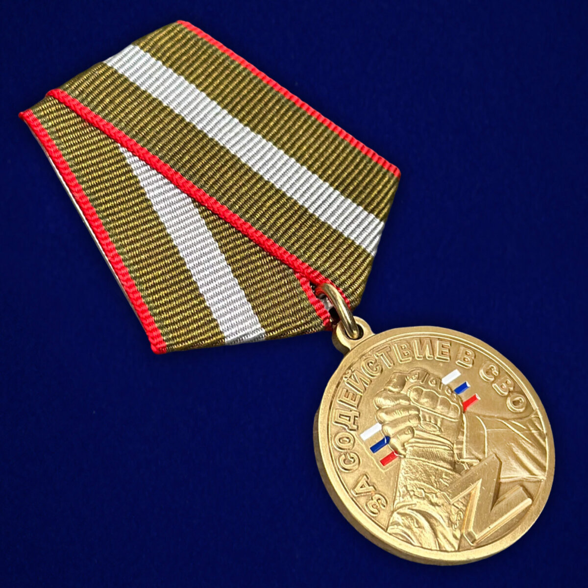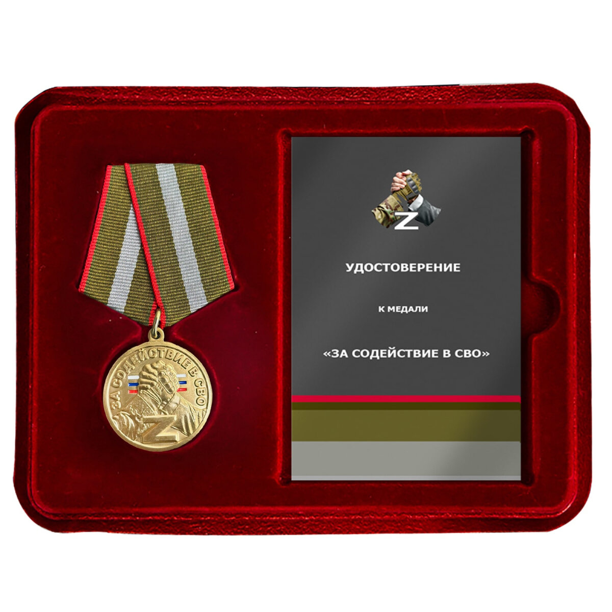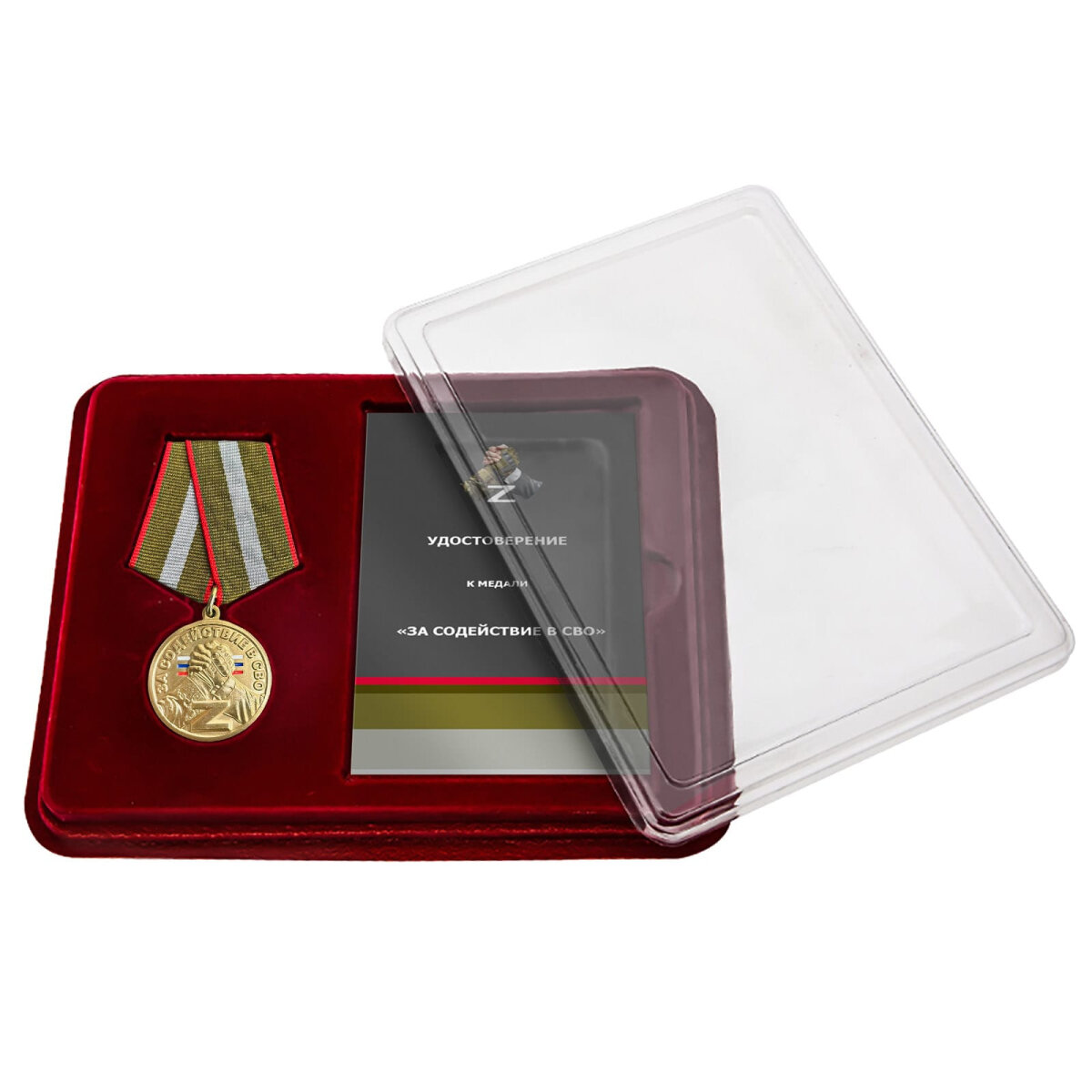 Купить Медаль за содействие "Победа будет за нами!" в наградном футляре из флока, муляж, латунь, диаметр медали 32мм
