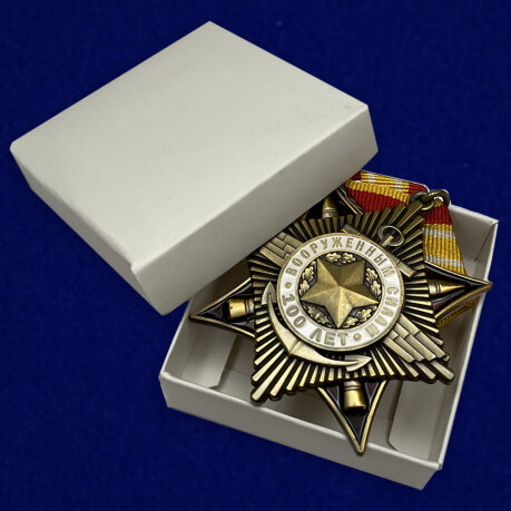 Купить Орден на колодке "100 лет Вооруженным силам", муляж, латунь, картонная коробочка