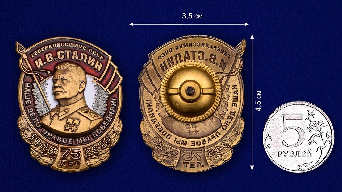 Знак Победы "Генералиссимус СССР И. В. Сталин", латунь, размер 3,5х4,5см интересное: