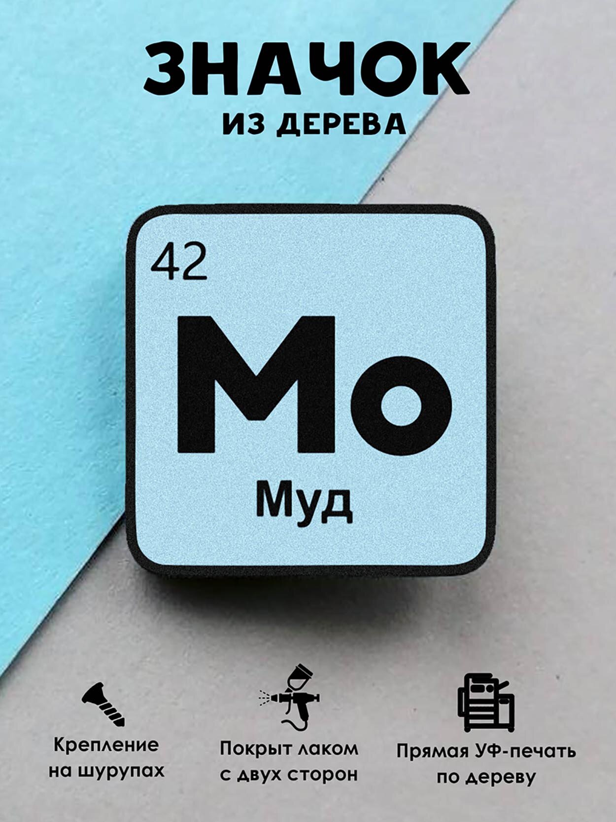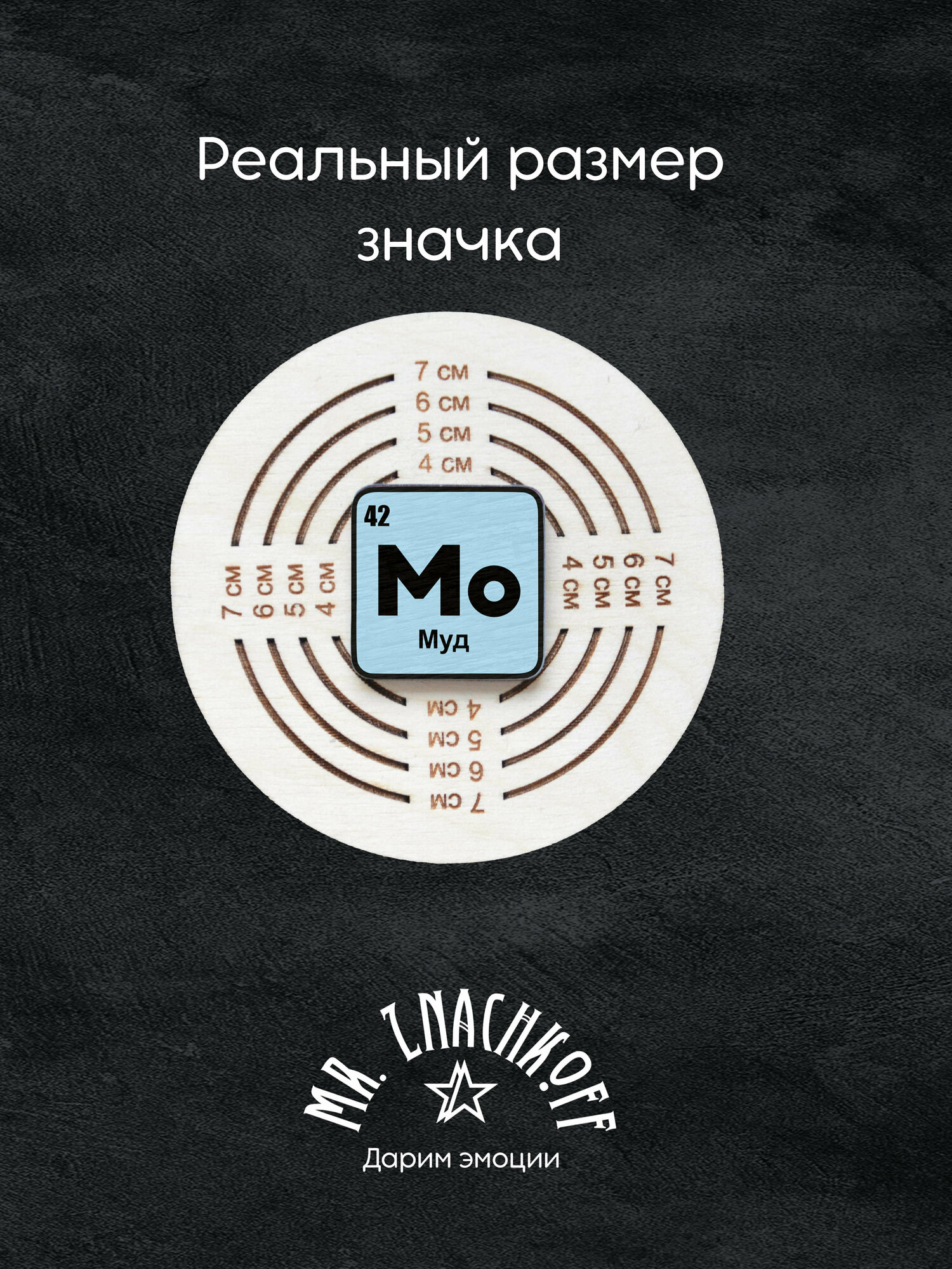 Значок Mr. Znachkoff "Химический элемент Муд", дерево, УФ-печать, влагостойкий лак, ручная сборка интересное: