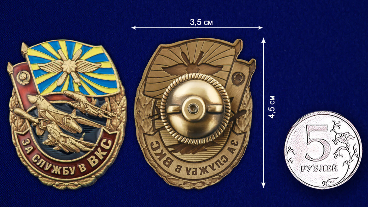 Купить Знак "За службу в ВКС", муляж, латунь, размер 3,5х4,5см, винтовое крепление