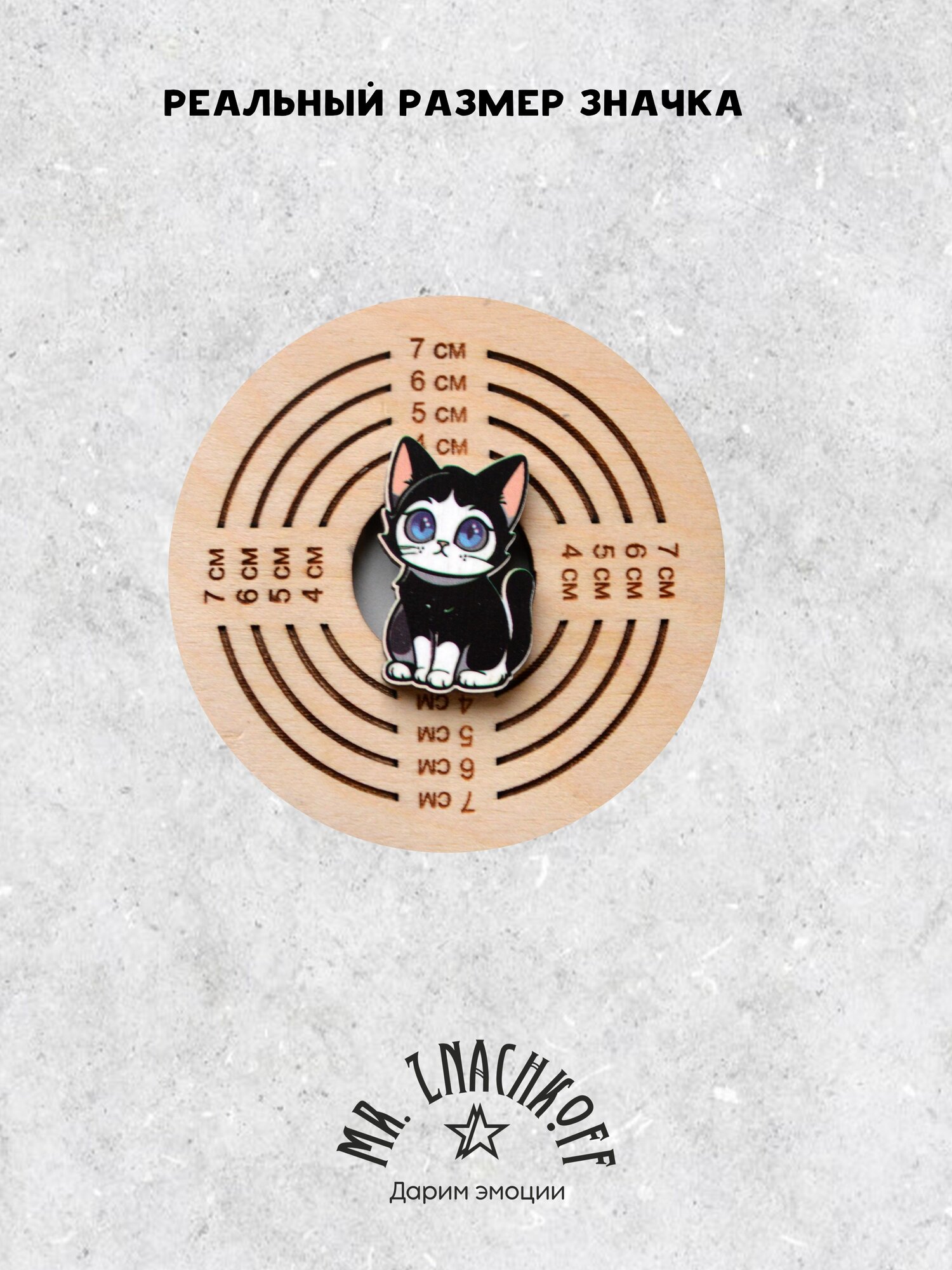 Значок Mr. Znachkoff "Черно-белый кот", дерево, УФ-печать, влагостойкий лак, ручная работа интересное: