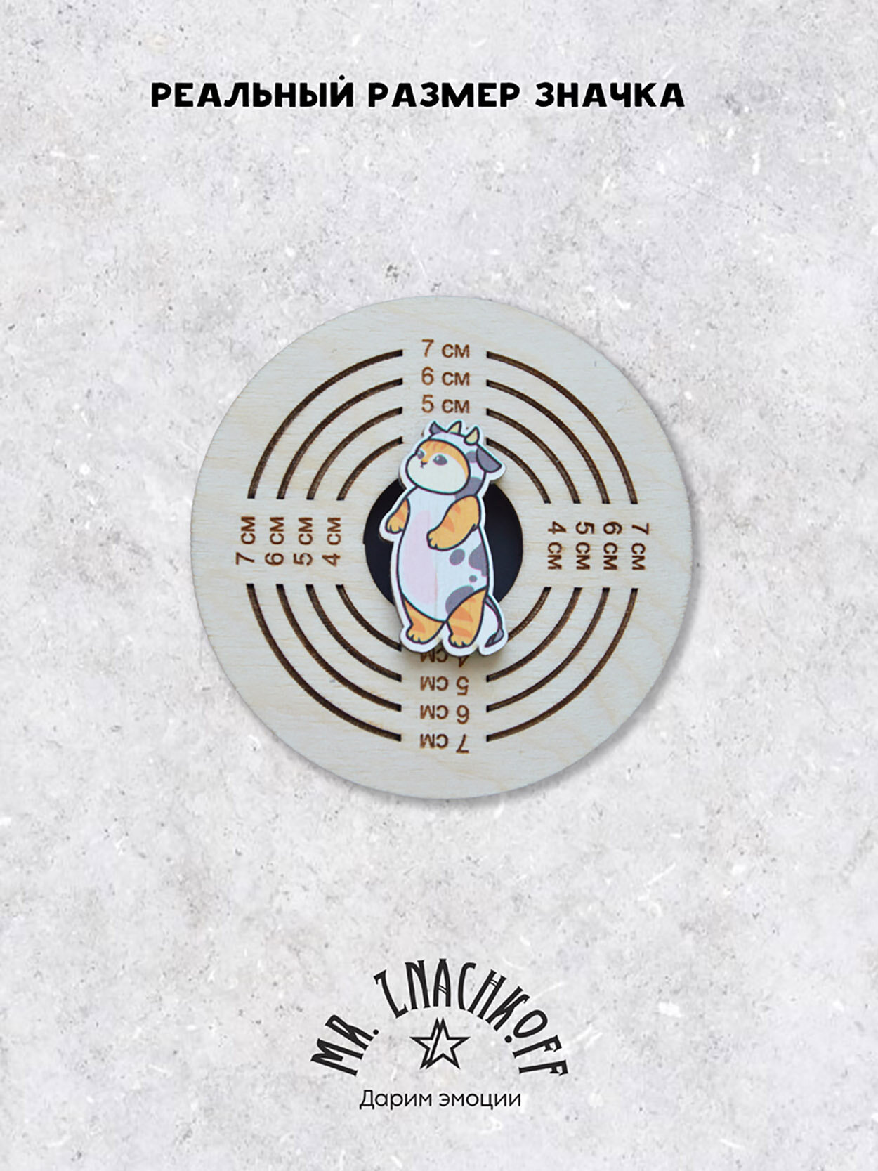 Значок Mr. Znachkoff "Котик-корова", дерево, УФ-печать, влагостойкий лак, ручная сборка, на рюкзак интересное: