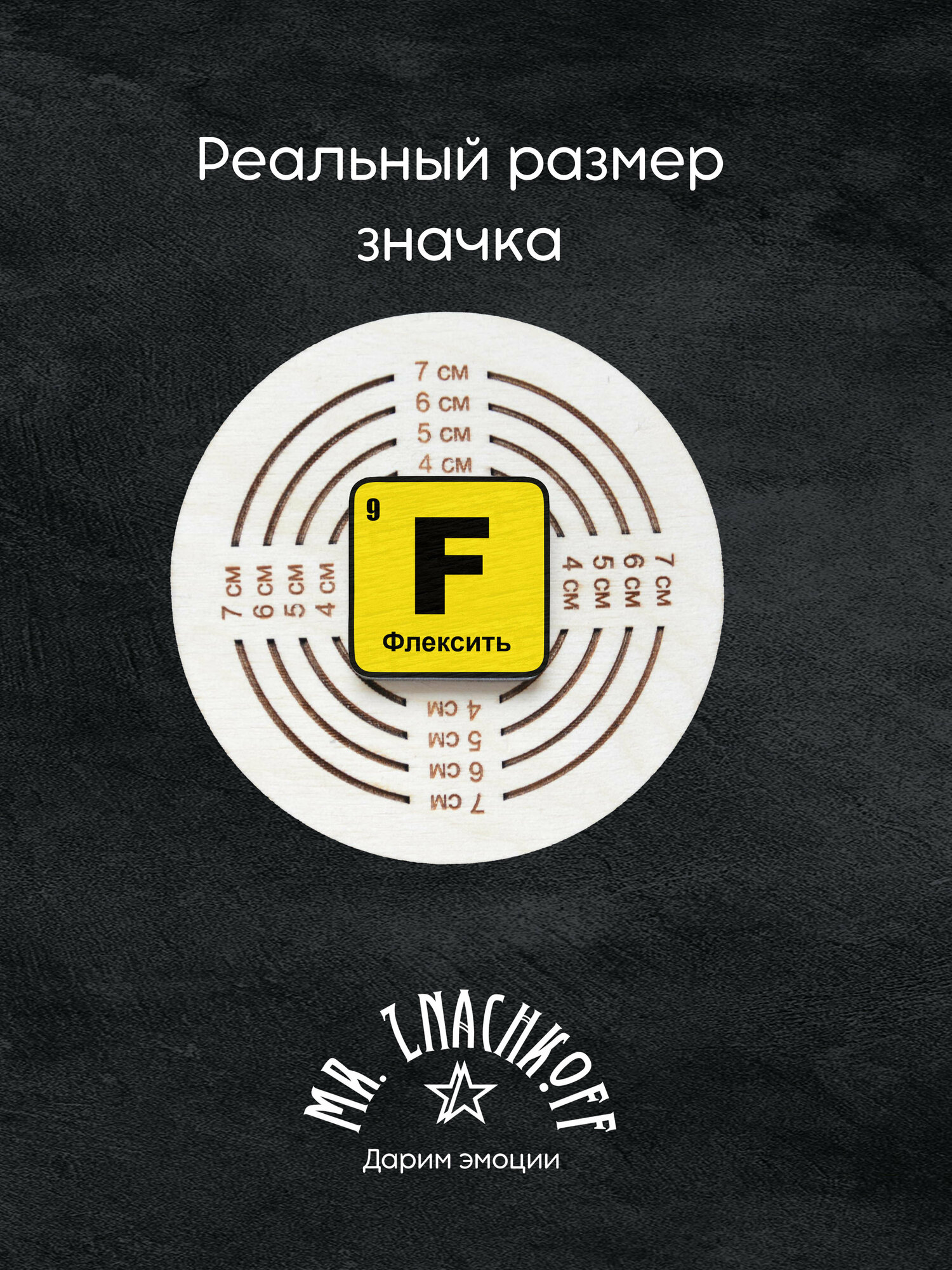 Значок Mr. Znachkoff "Химический элемент Флексить", дерево, УФ-печать, влагостойкий лак, ручная сборка интересное: