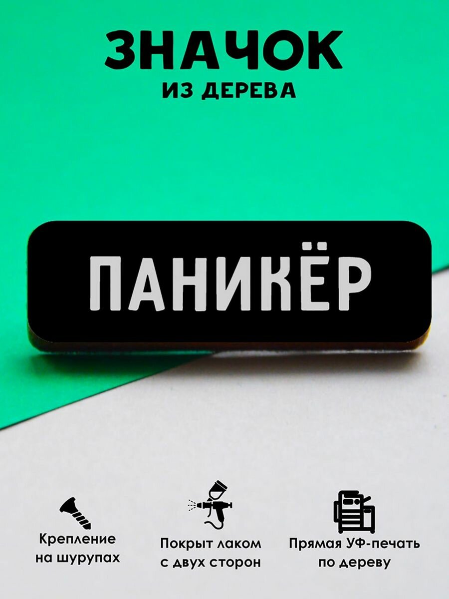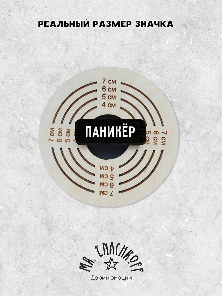 Значок Mr. Znachkoff "Паникер", дерево, УФ-печать, влагостойкий лак, ручная сборка интересное: