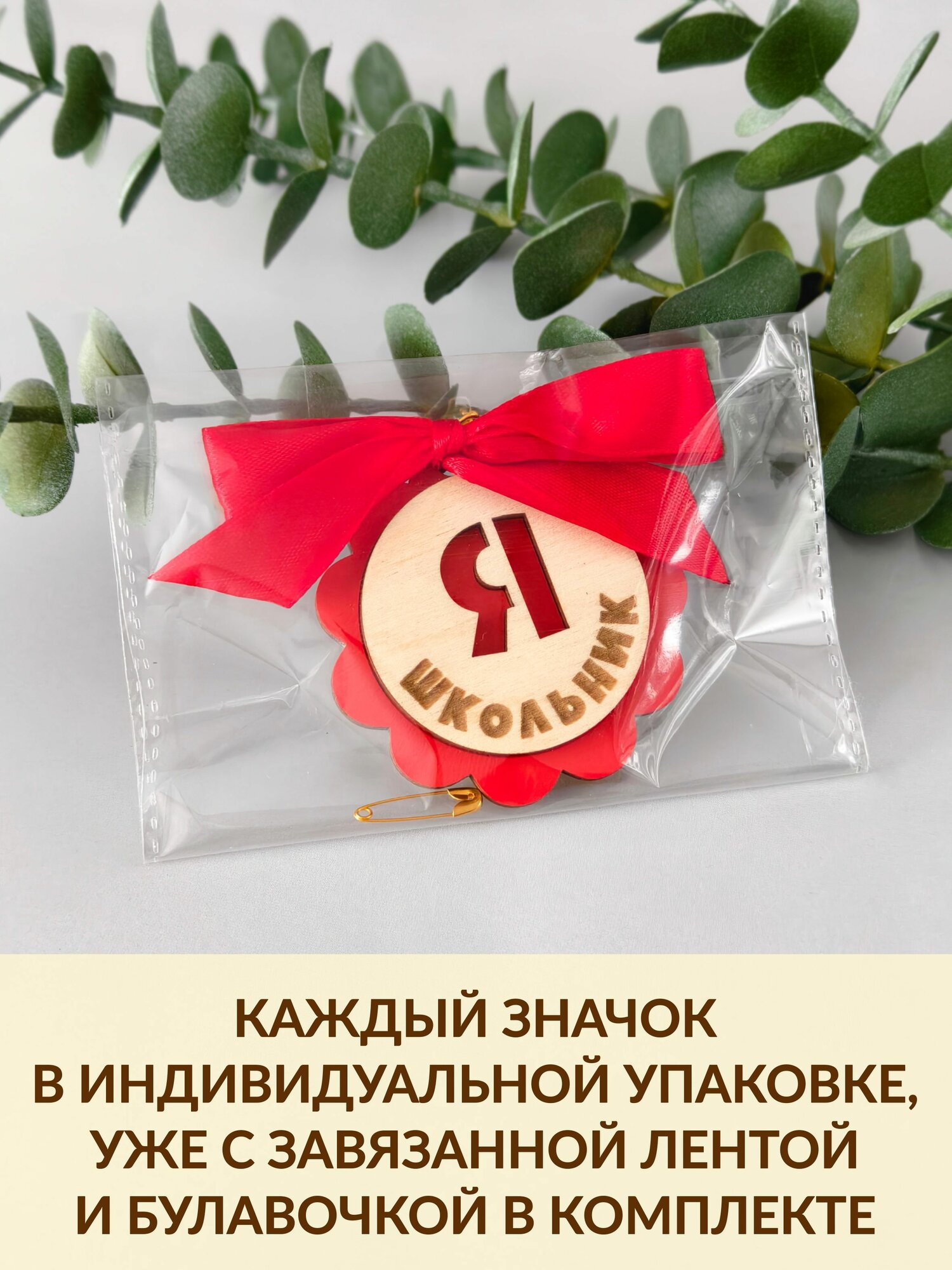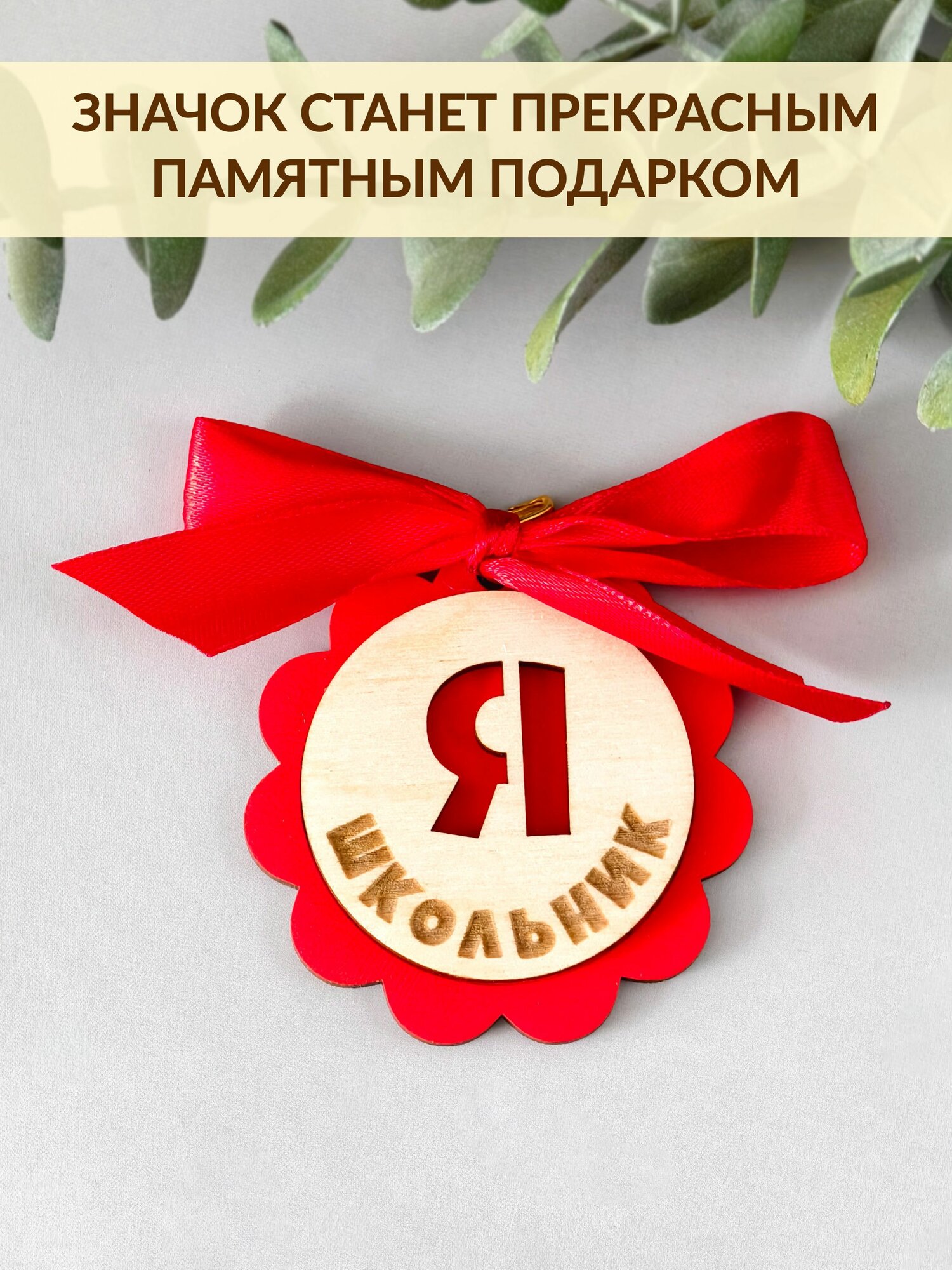 Значок первоклассника из дерева DecorSo 1 шт. Сувенир для школьника на 1 сентября