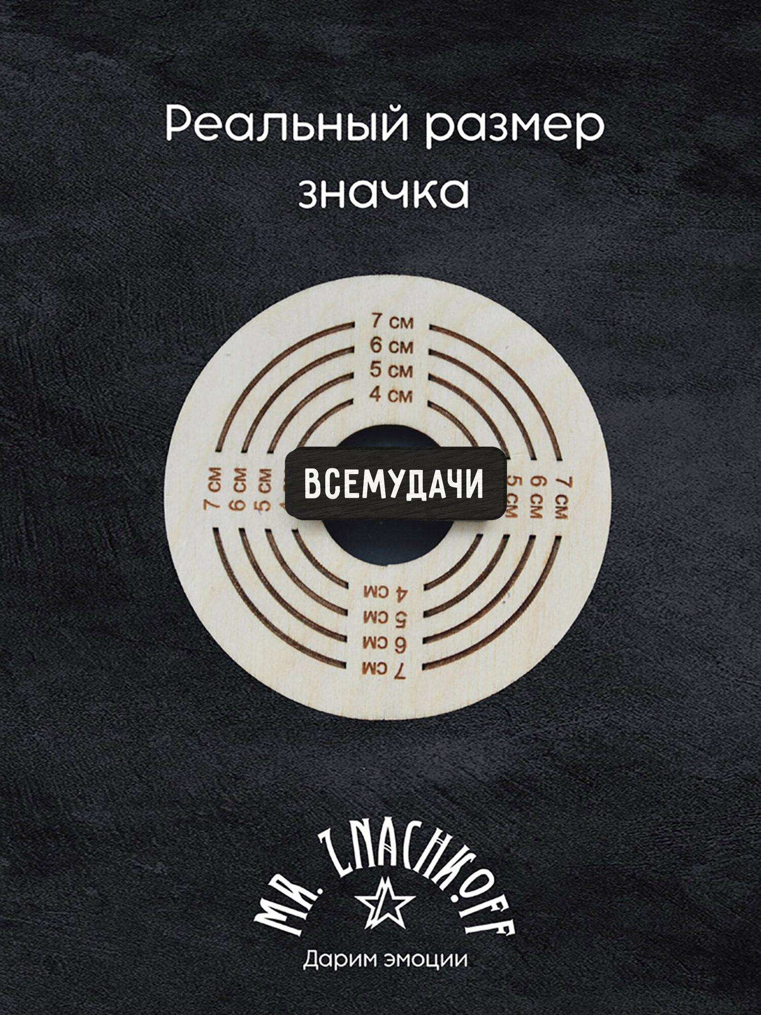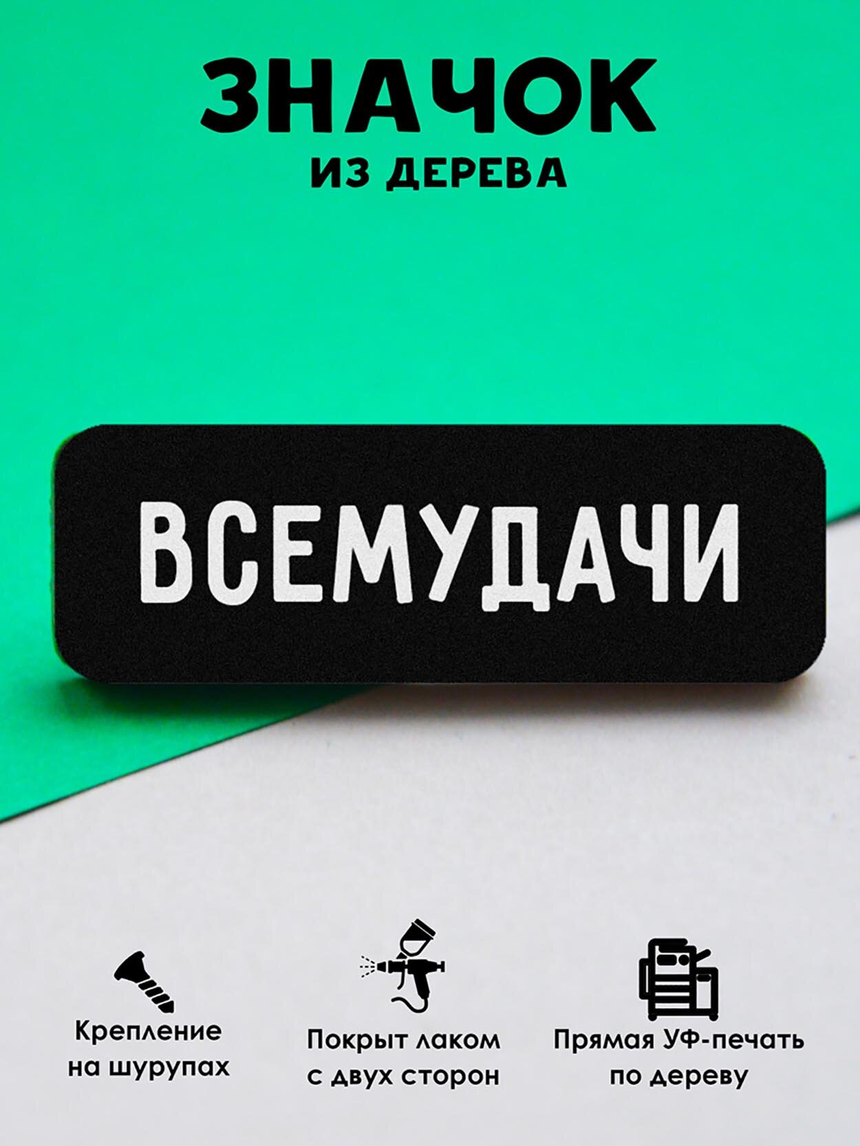 Значок Mr. Znachkoff "Всемудачи", дерево, УФ-печать, влагостойкий лак, ручная сборка интересное: