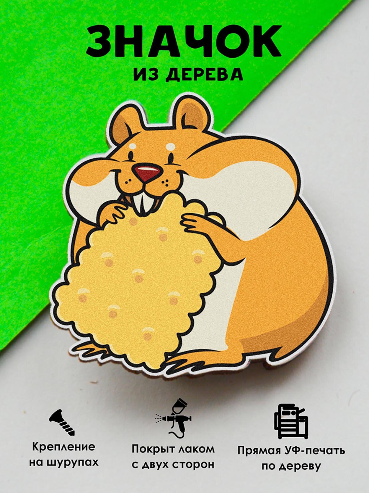 Значок Mr. Znachkoff "Хомяк", дерево, УФ-печать, влагостойкий лак, ручная сборка, на рюкзак интересное: