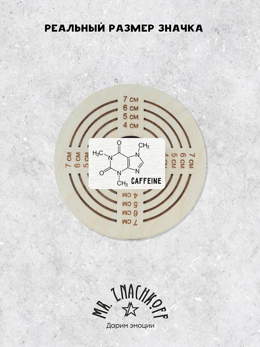 Значок Mr. Znachkoff "Кофеин", дерево, УФ-печать, влагостойкий лак, ручная сборка интересное: