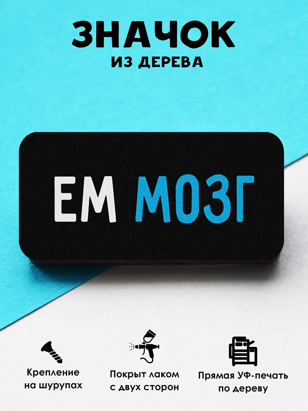 Значок Mr. Znachkoff "Ем мозг", дерево, УФ-печать, влагостойкий лак, ручная работа интересное: