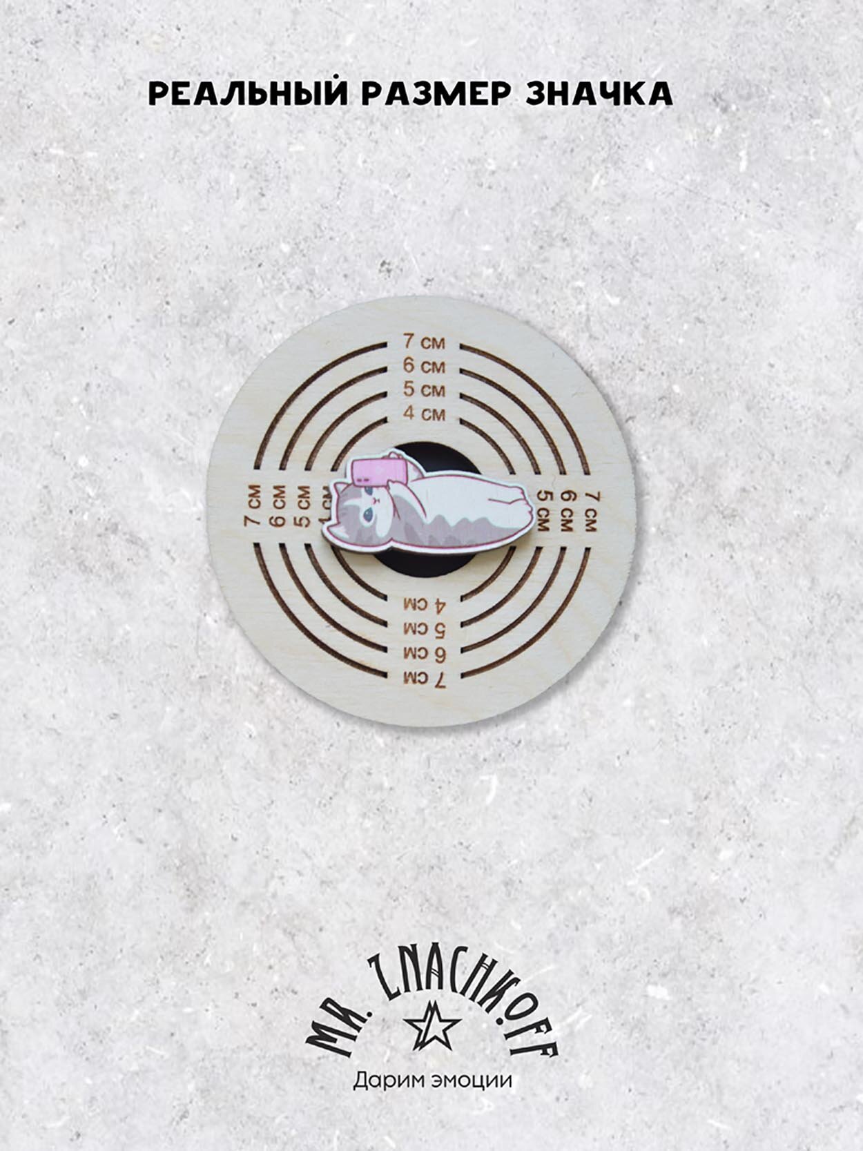 Значок Mr. Znachkoff "Котик с телефоном", дерево, УФ-печать, влагостойкий лак, ручная сборка, на рюкзак интересное:
