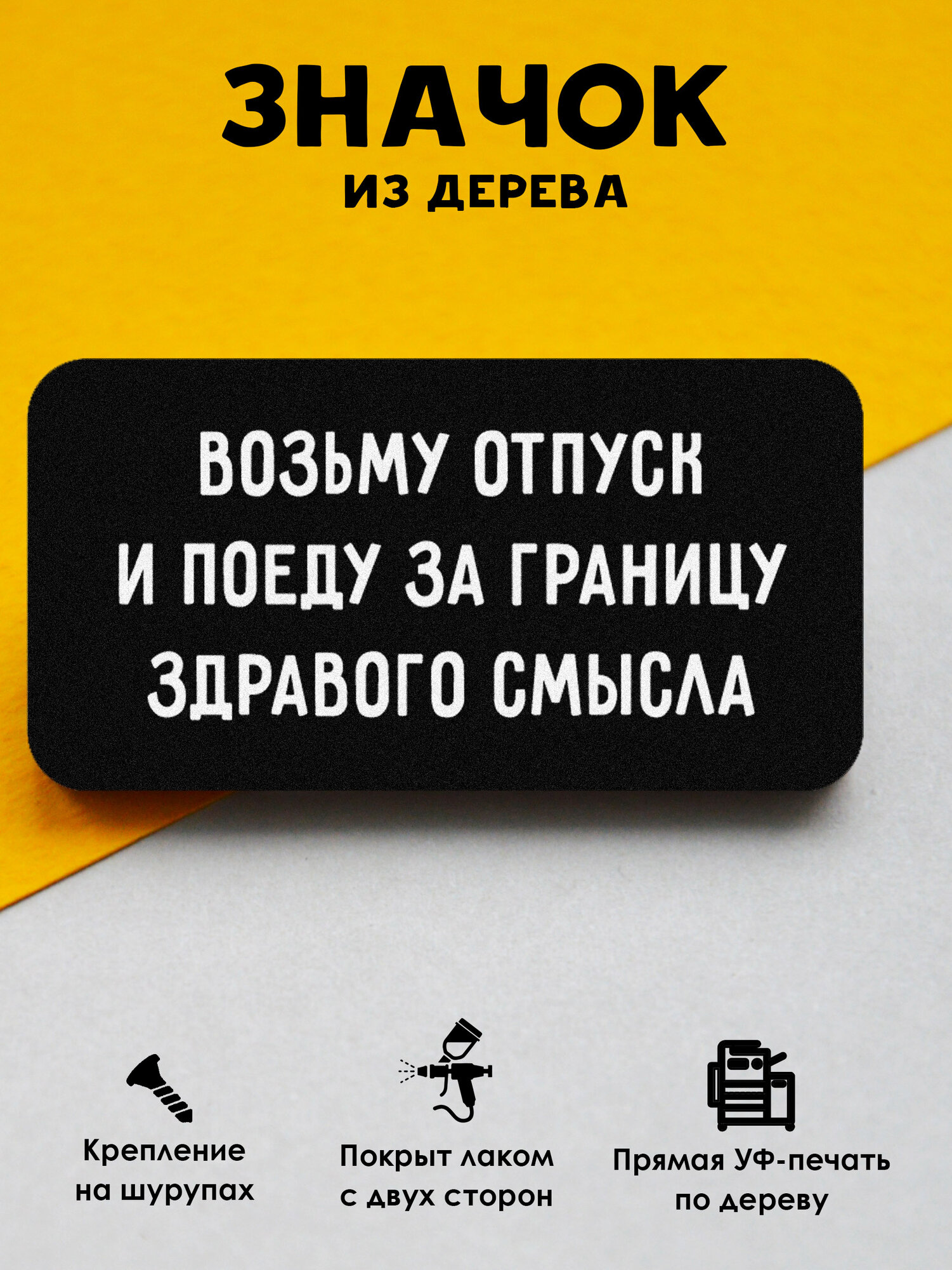 Значок MR. ZNACHKOFF "Возьму отпуск", дерево, УФ-печать, влагостойкий лак, на рюкзак интересное: