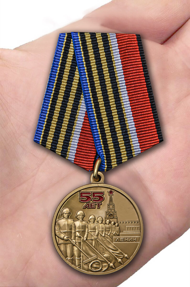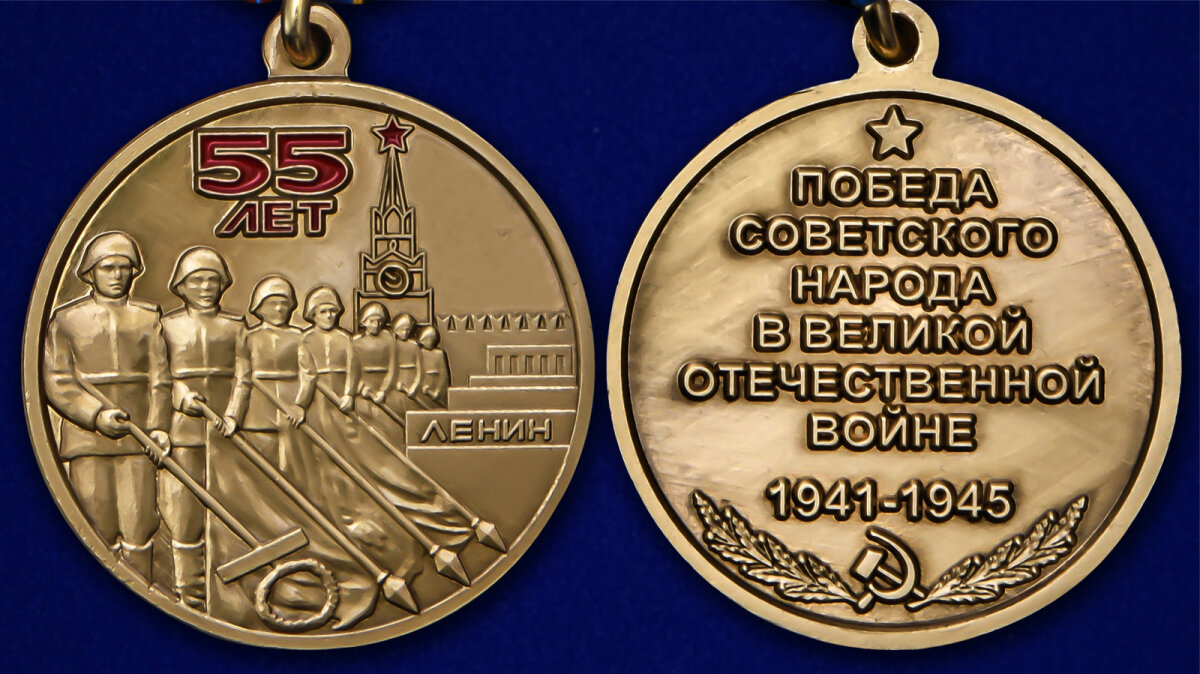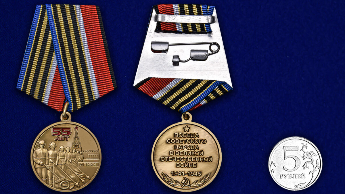Купить Медаль "55 лет Победы советского народа в Великой Отечественной войне 1941-1945 гг.", (муляж), латунь, диаметр 32мм