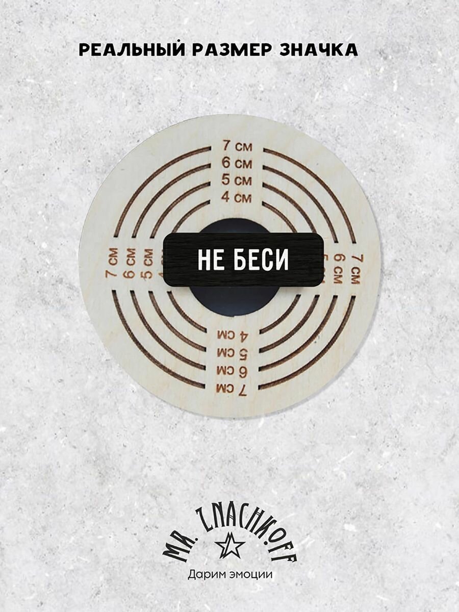 Значок Mr. Znachkoff "Не беси", дерево, УФ-печать, влагостойкий лак, ручная сборка интересное:
