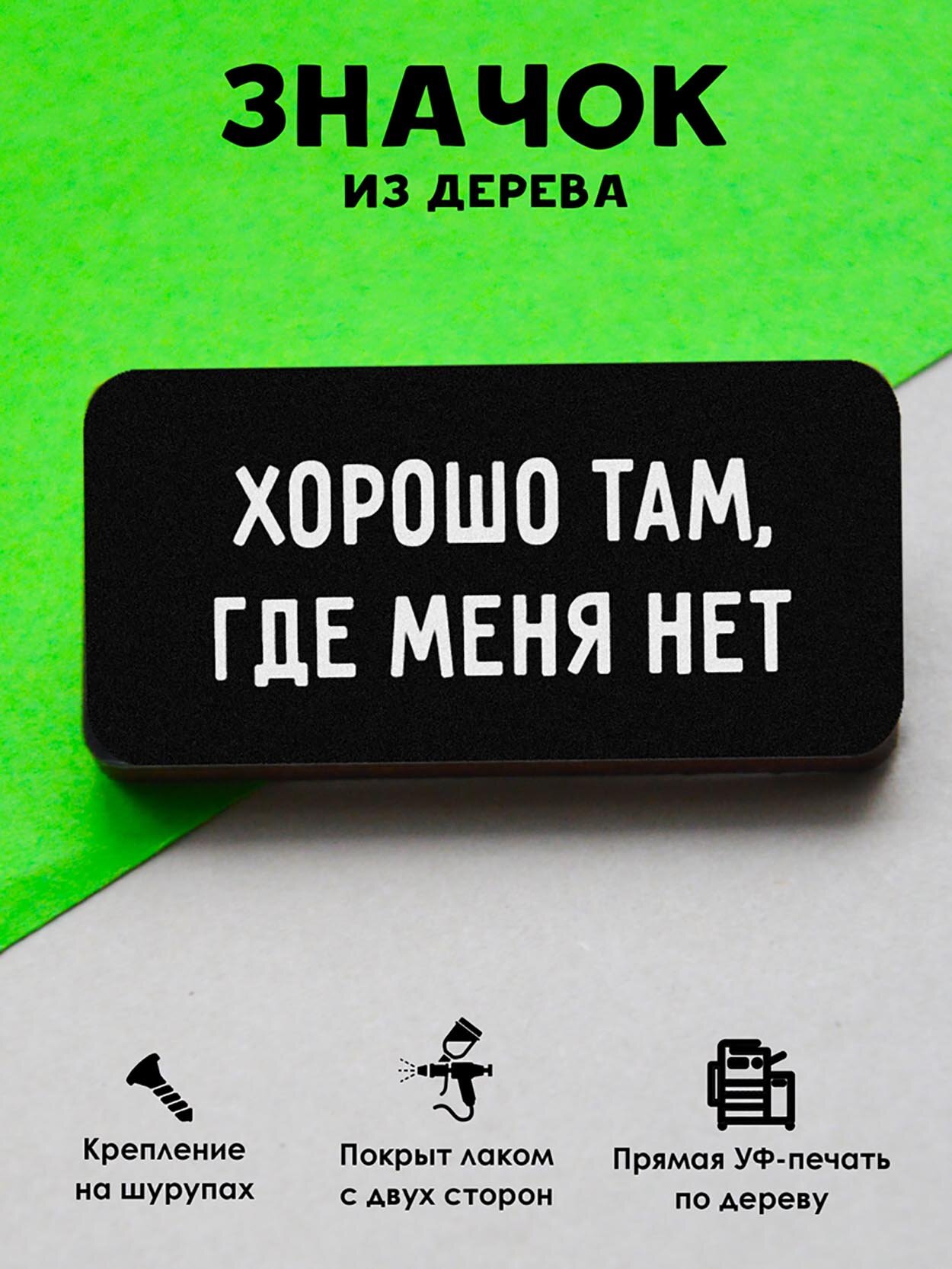 Значок Mr. Znachkoff "Хорошо там, где меня нет", дерево, УФ-печать, влагостойкий лак, ручная работа интересное:
