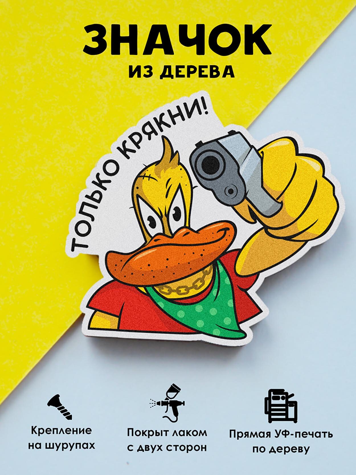 Значок Mr. Znachkoff "Только крякни", дерево, УФ-печать, влагостойкий лак, ручная сборка, на рюкзак интересное:
