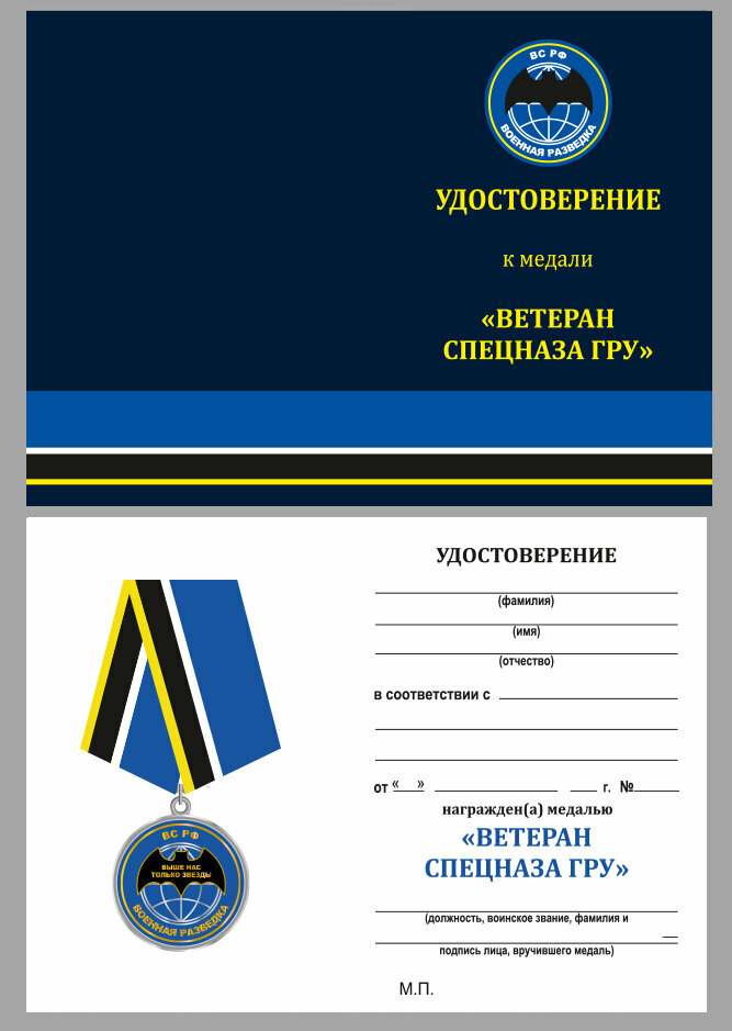 Купить Медаль "Ветеран спецназа ГРУ", муляж, латунь, диаметр медали 32мм