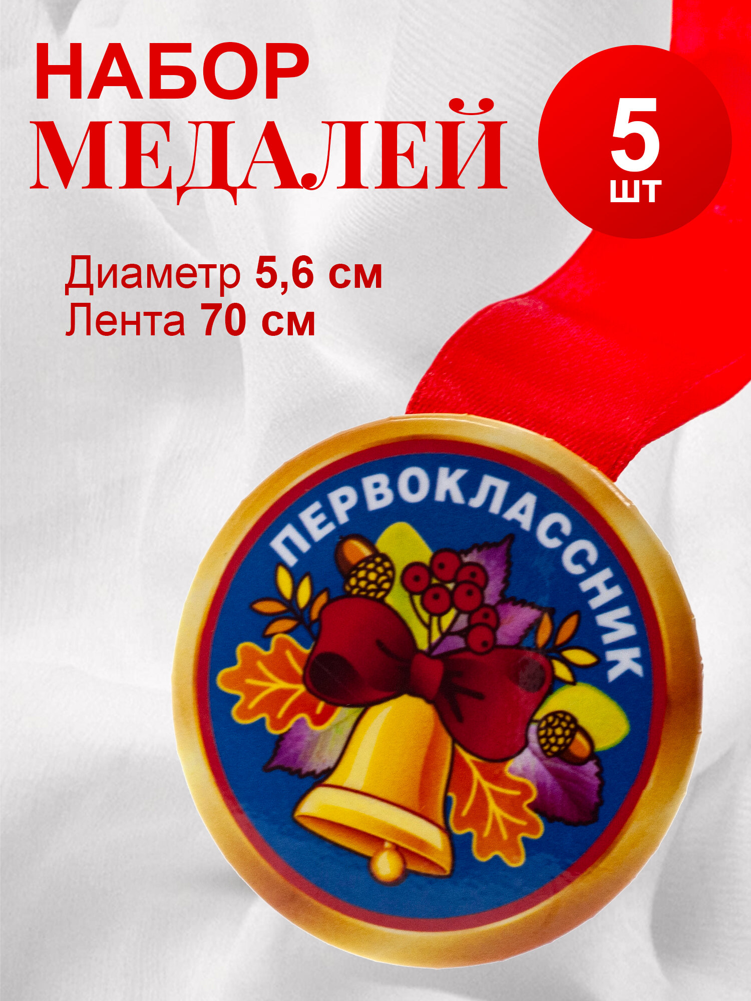 Набор медалей на 1 сентября "Присвоено звание "Первоклассник", 5 шт.