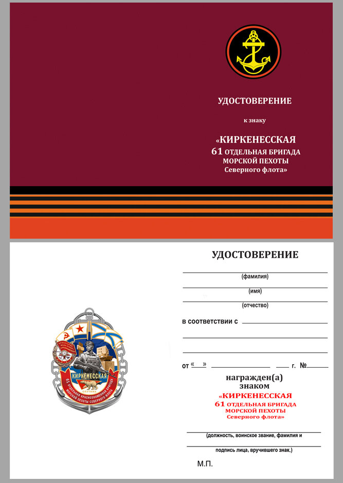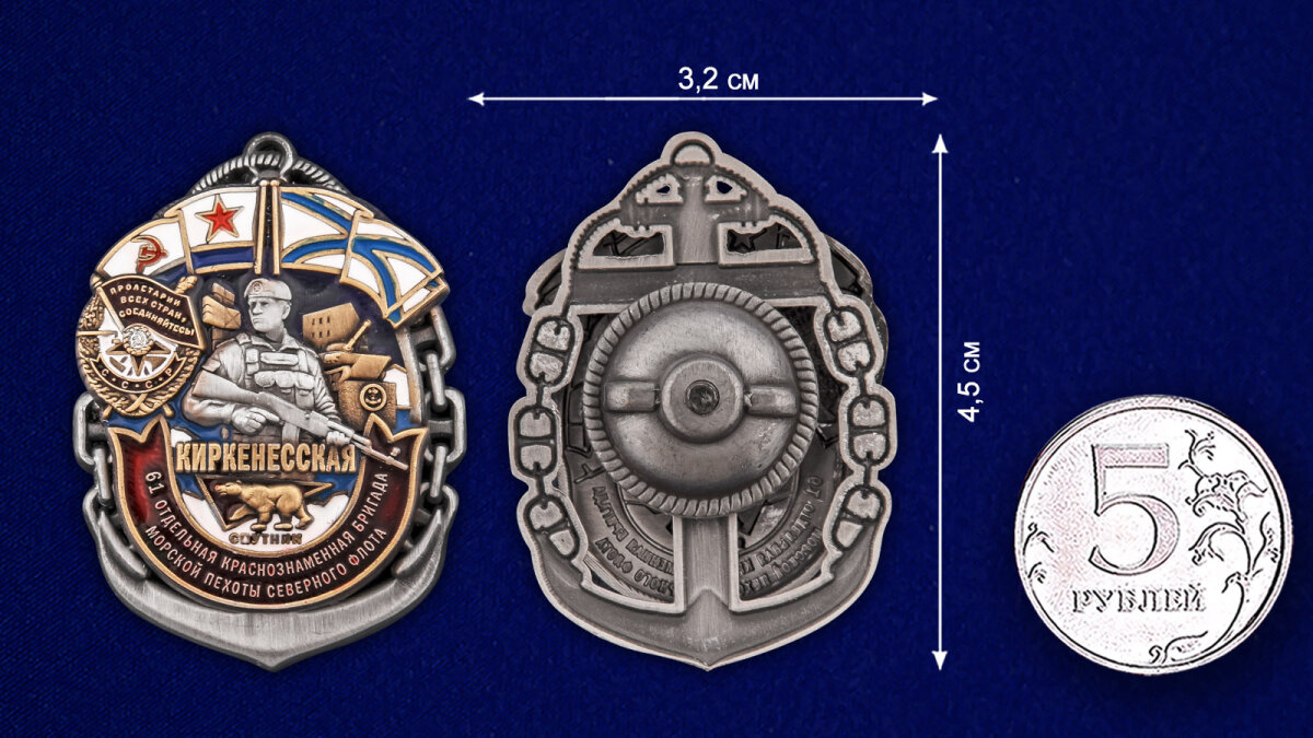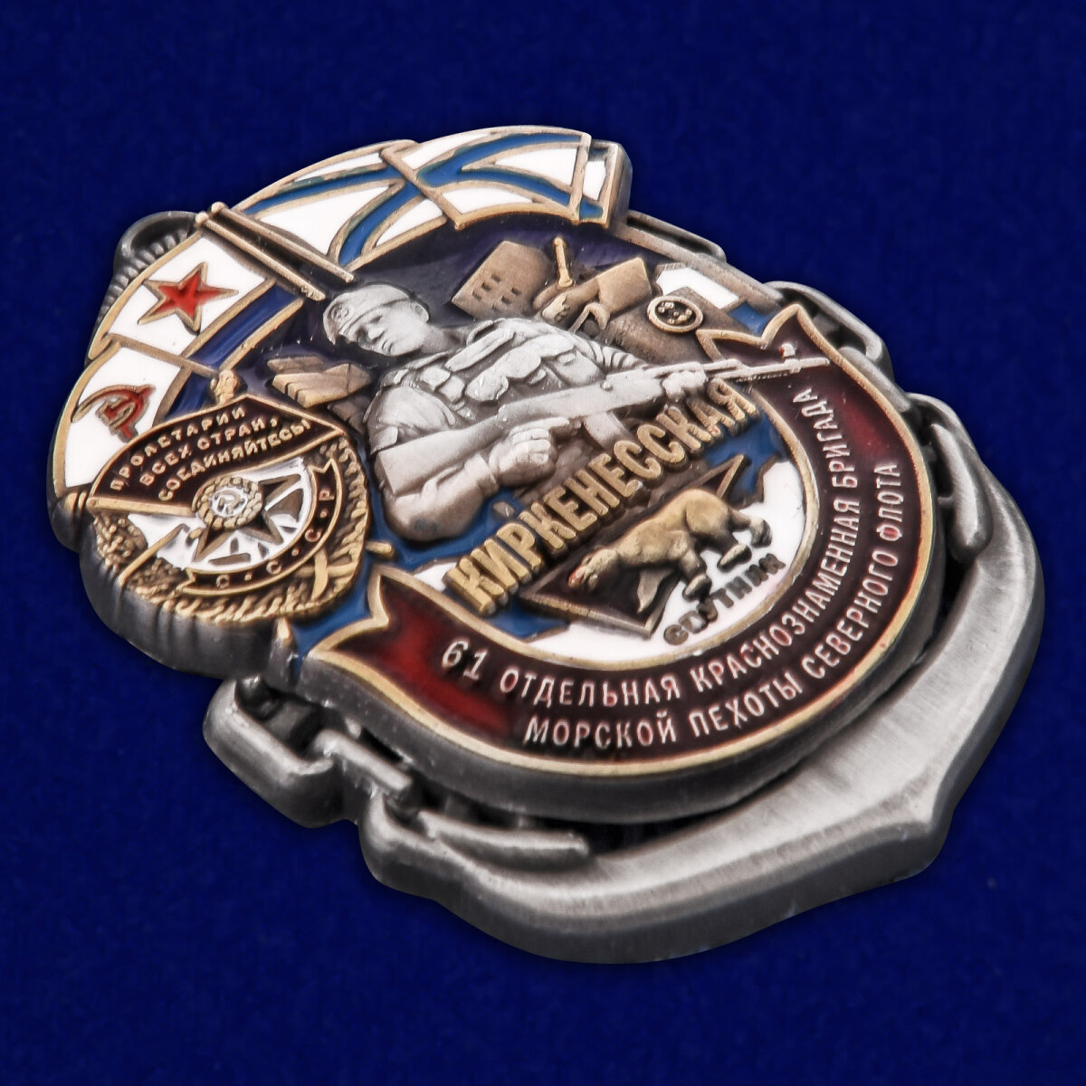 Купить Знак "61-я Киркенесская ОбрМП", муляж, латунь, размер 3,2х4,5см, винтовое крепление