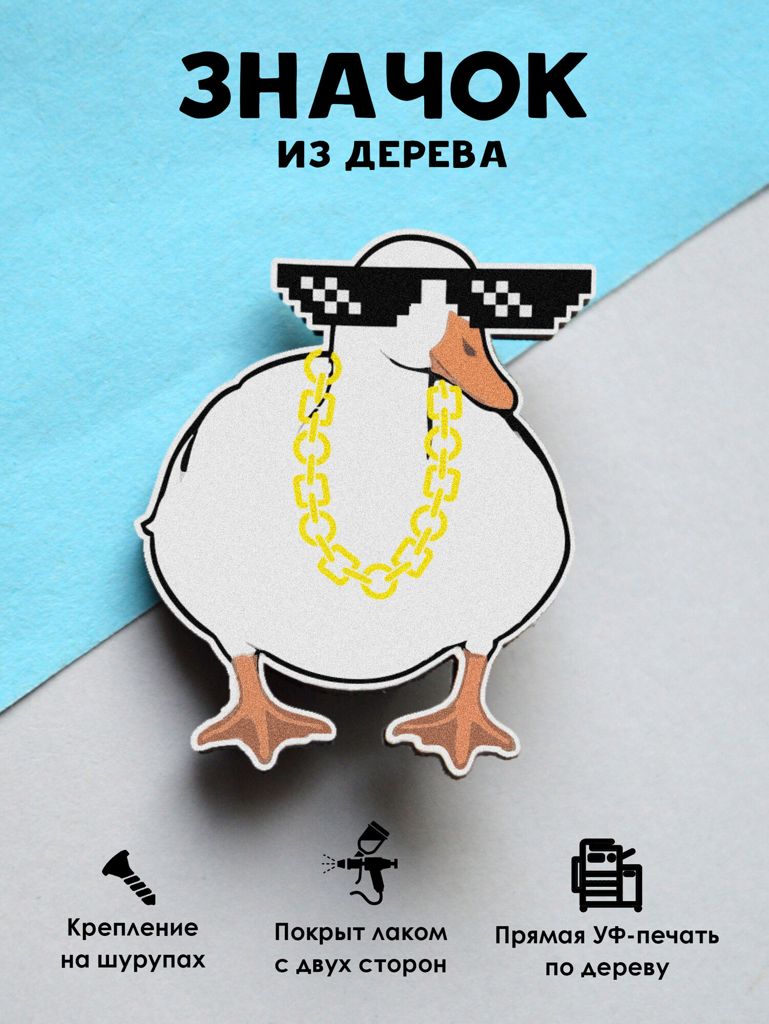 Значок MR. ZNACHKOFF "Крутой гусь", дерево, ручная работа, УФ-принт, влагостойкий лак, на рюкзак интересное: