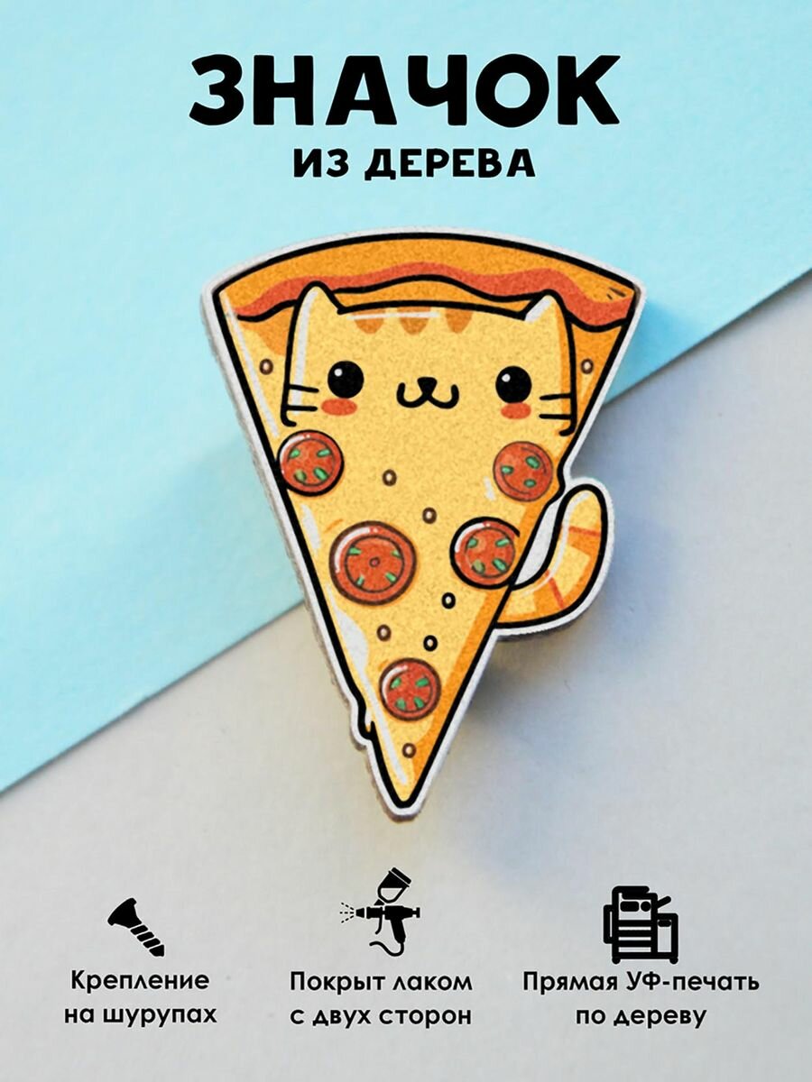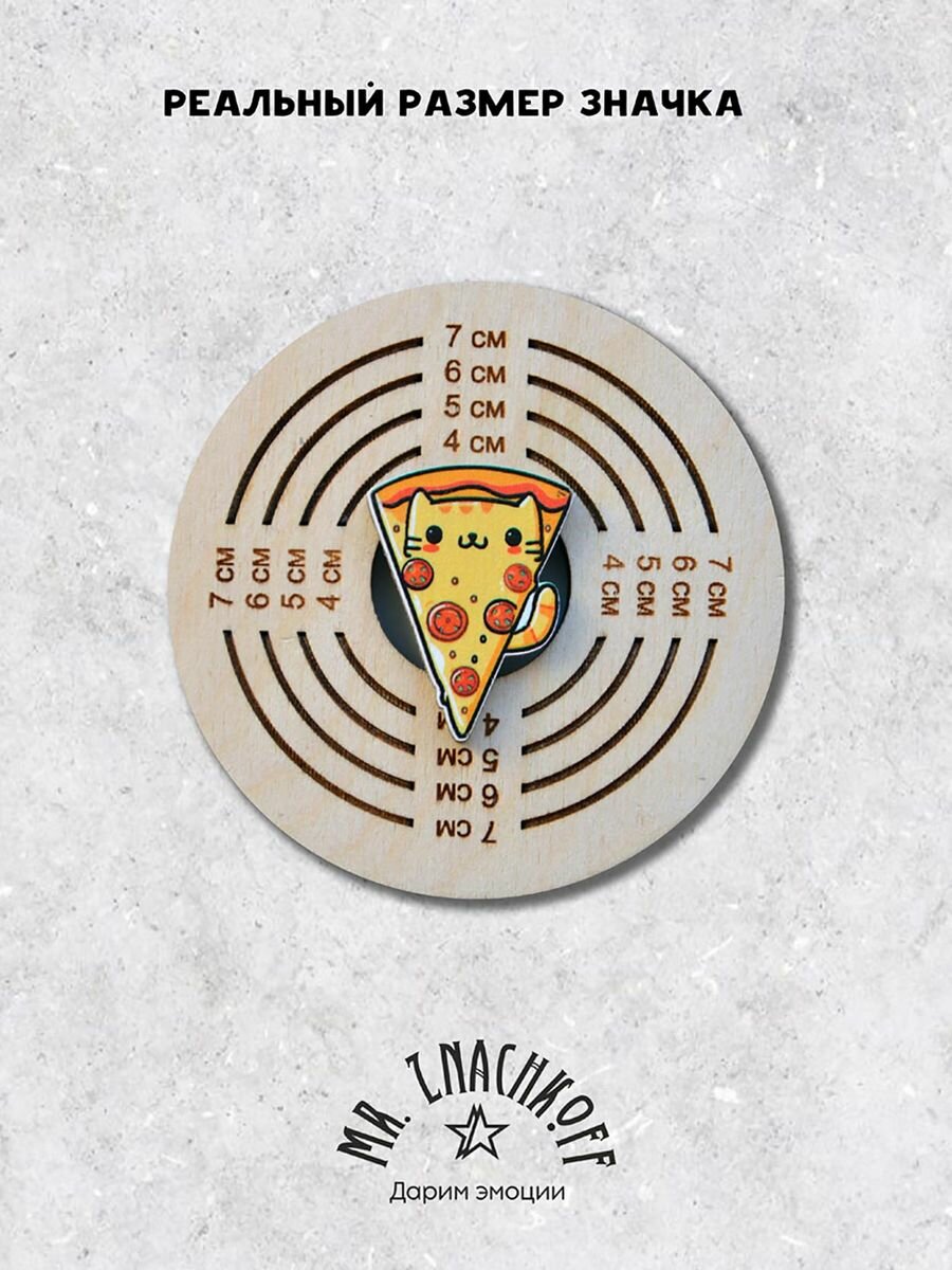 Значок Mr. Znachkoff "Котик-пицца", дерево, УФ-печать, влагостойкий лак, ручная сборка интересное: