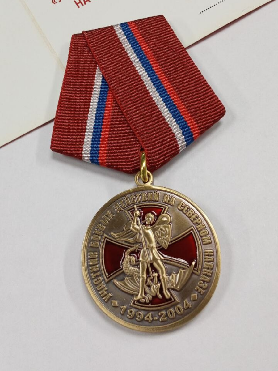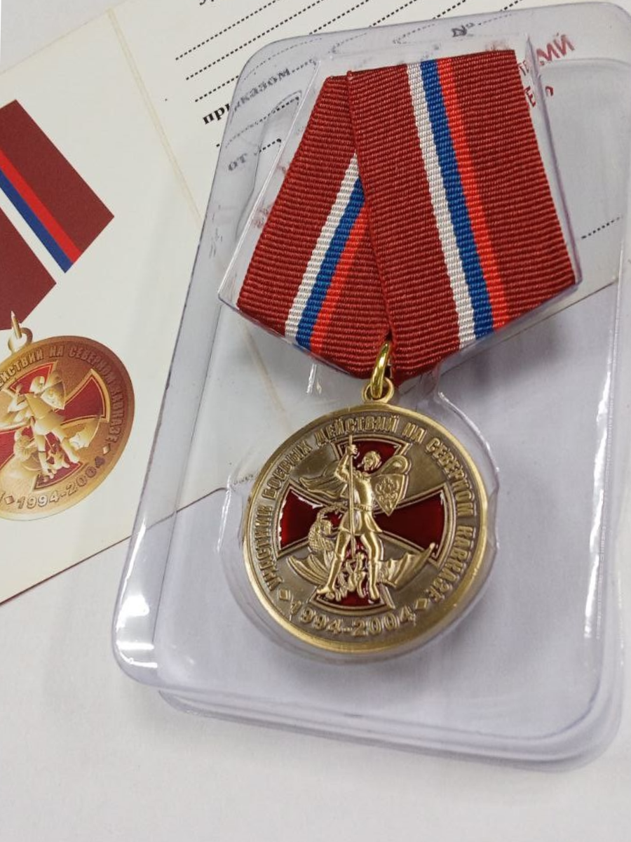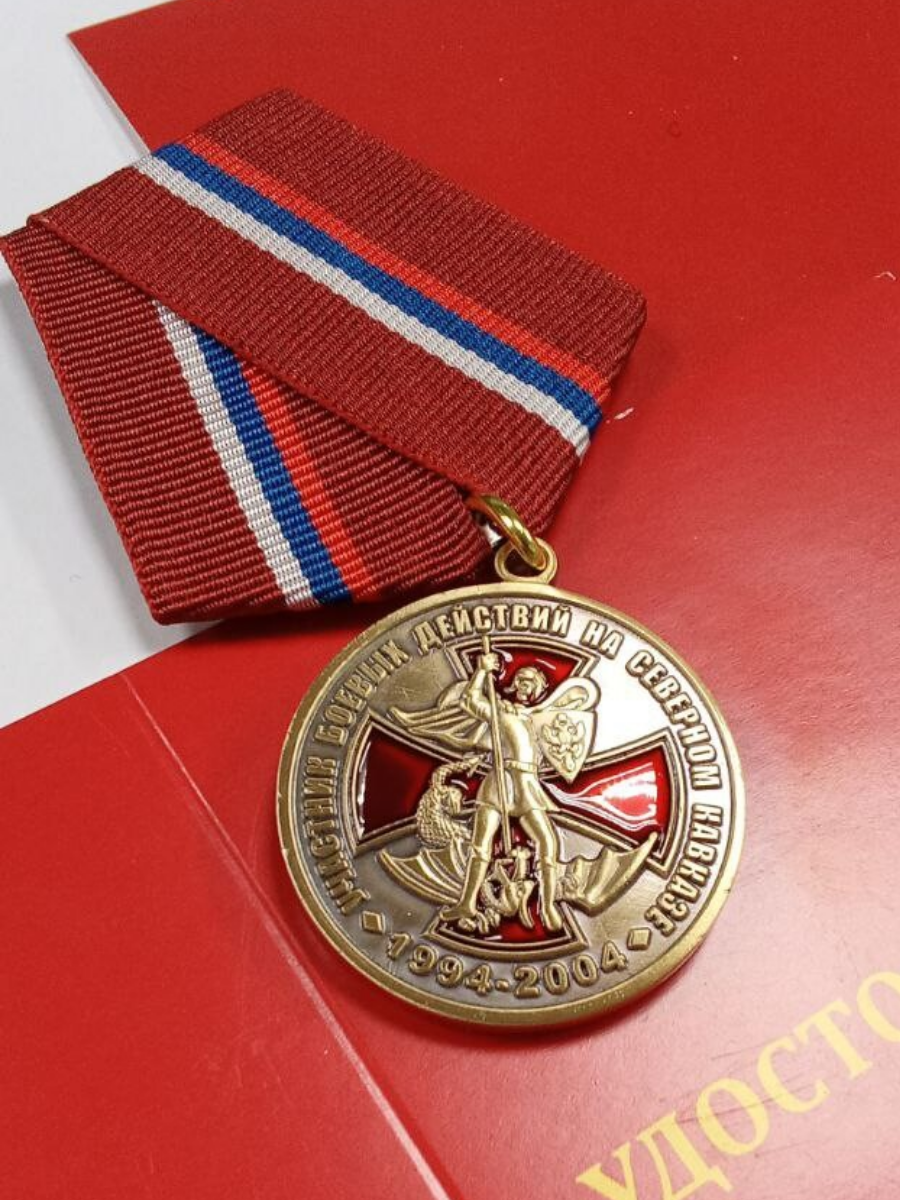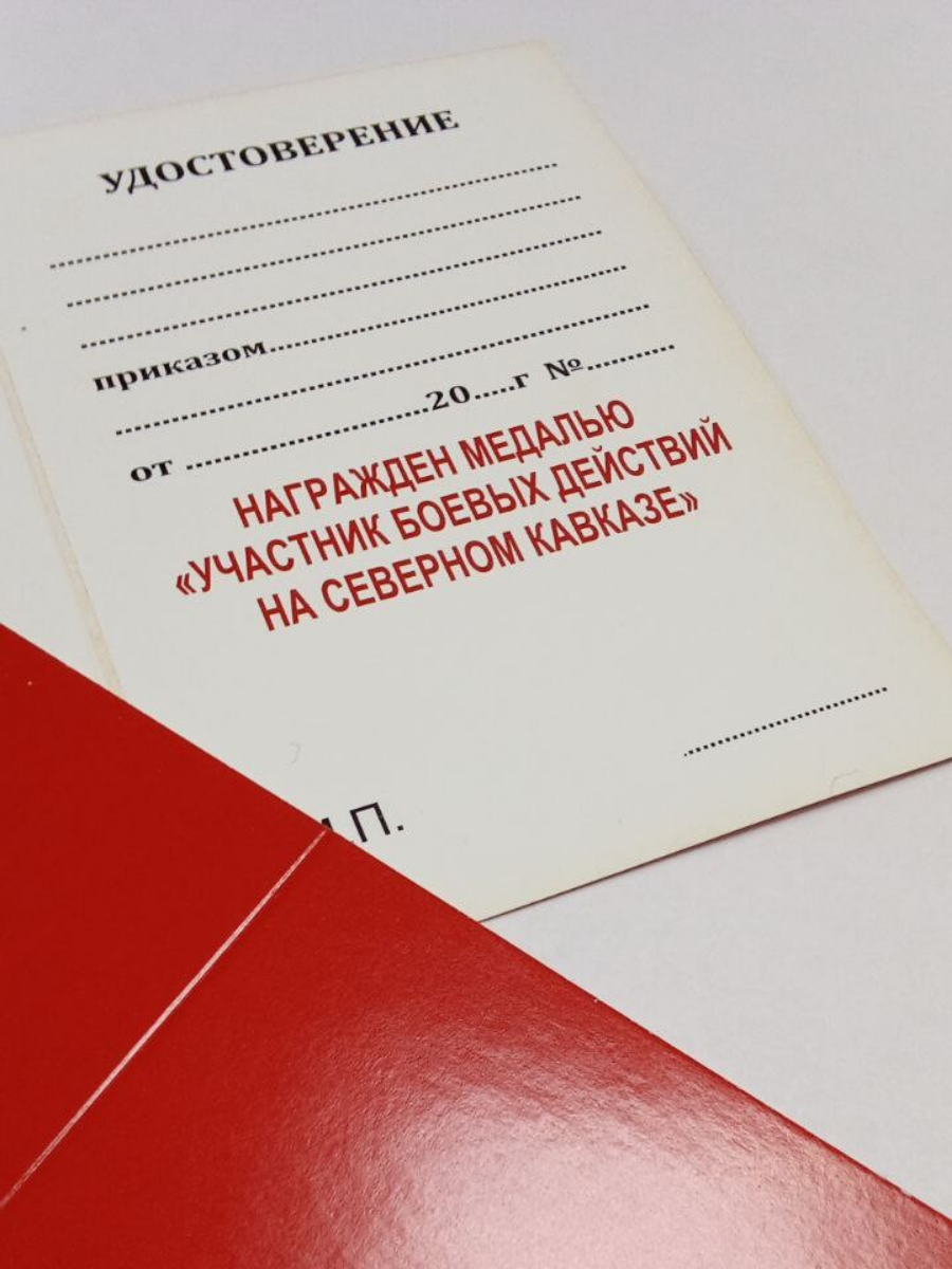 Медаль с удостоверением Участник боевых действий на Северном Кавказе №555 (в футляре) интересное: