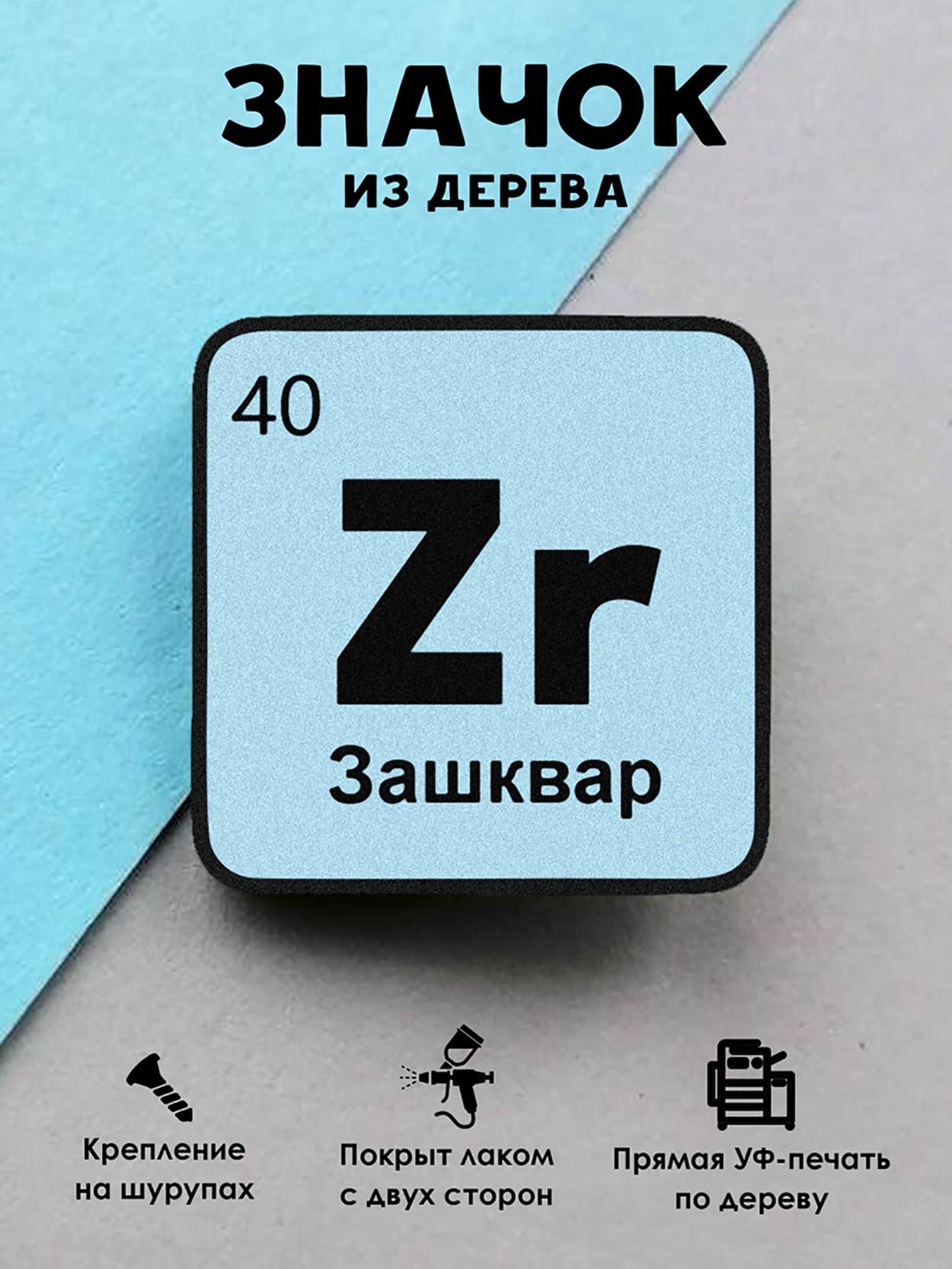 Значок Mr. Znachkoff "Химический элемент Зашквар", дерево, УФ-печать, влагостойкий лак интересное: