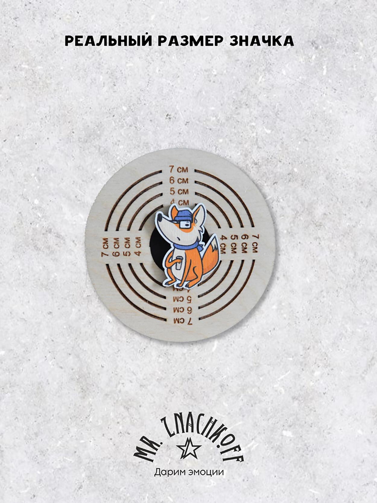 Значок Mr. Znachkoff "Лисица с кофе", дерево, ручная сборка, УФ-принт, 4х4 см интересное: