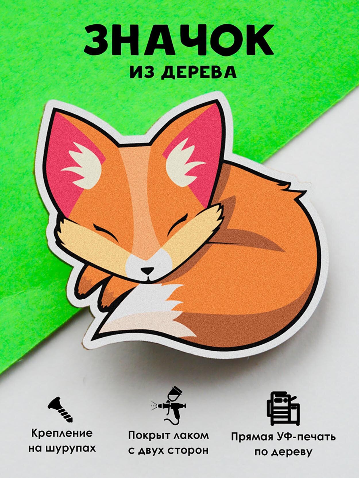 Значок Mr. Znachkoff "Лисичка", дерево, ручная сборка, УФ-принт, 4х4 см интересное: