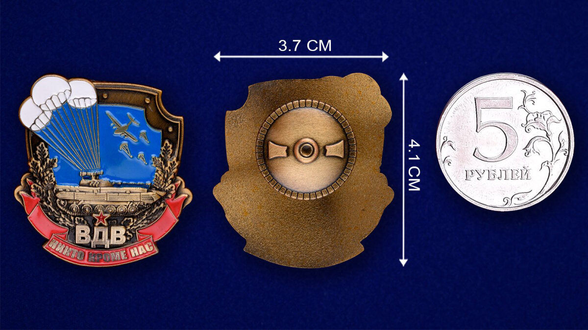 Знак десантника "Никто, кроме нас", муляж, латунь, размер 3,7х4,1см, винтовое крепление интересное: