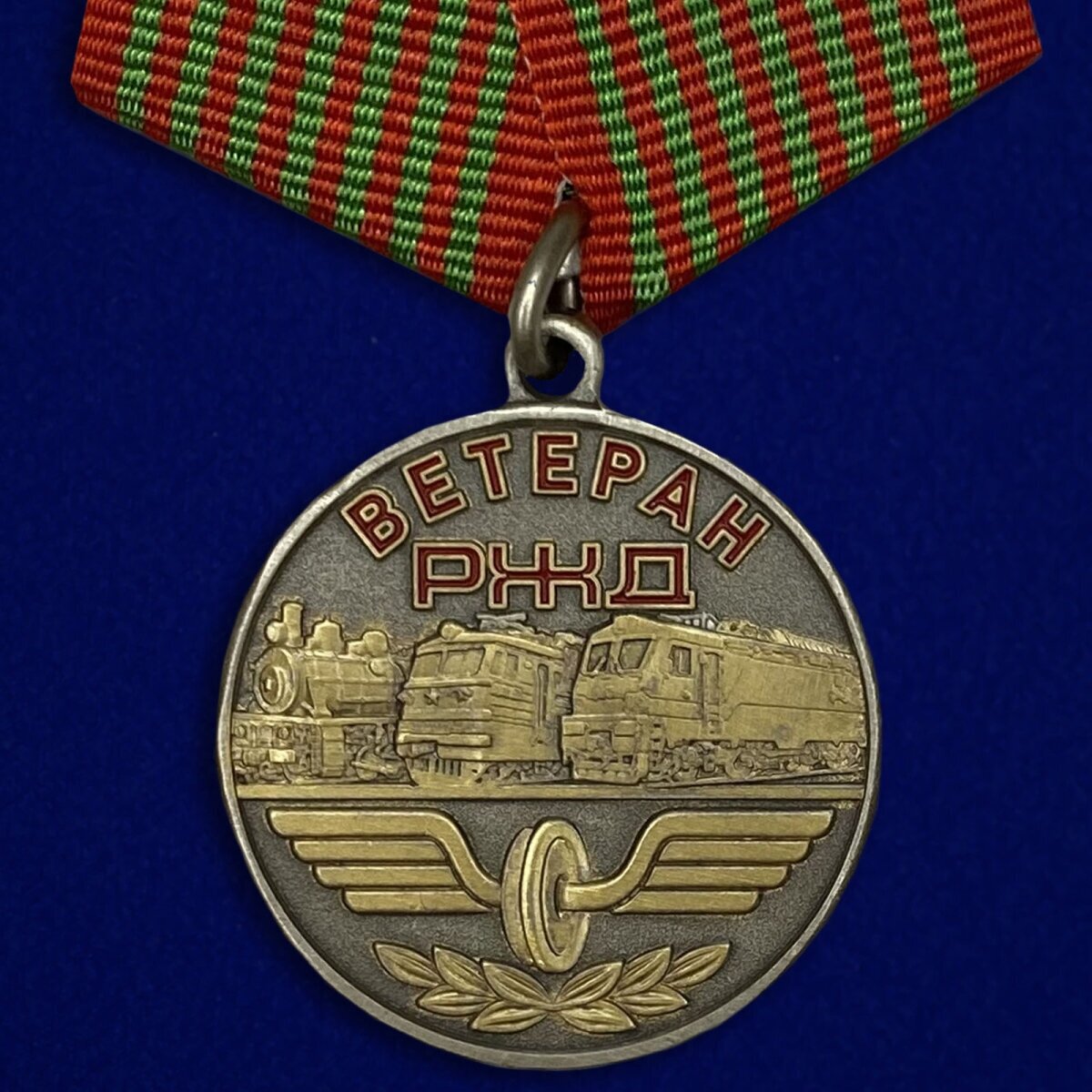 Купить Медаль "Ветеран РЖД", муляж, материал латунь, диаметр медали 32мм