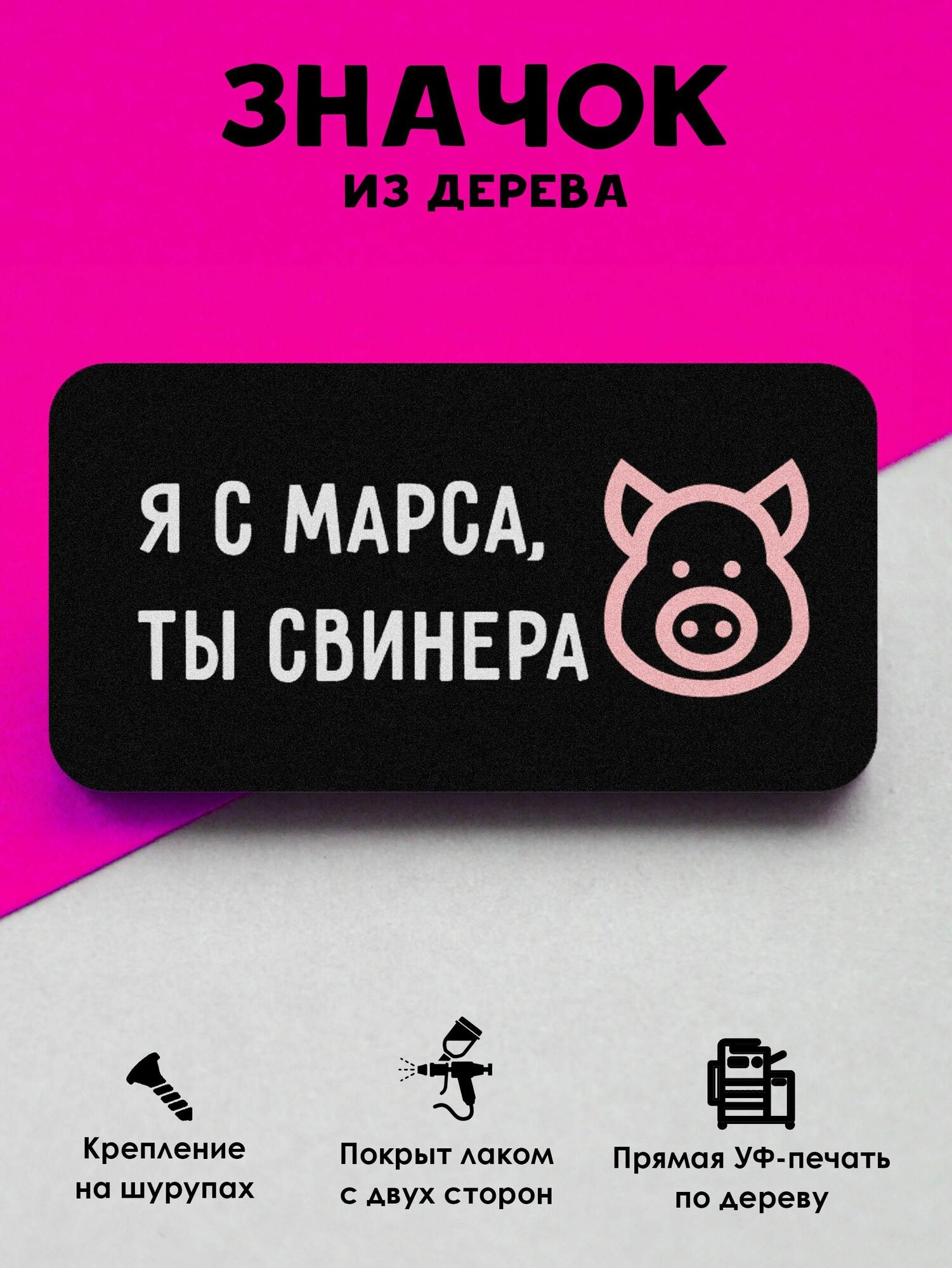 Купить Значок Mr. Znachkoff "Свинера", дерево, УФ-печать, влагостойкий, на рюкзак, прикольный
