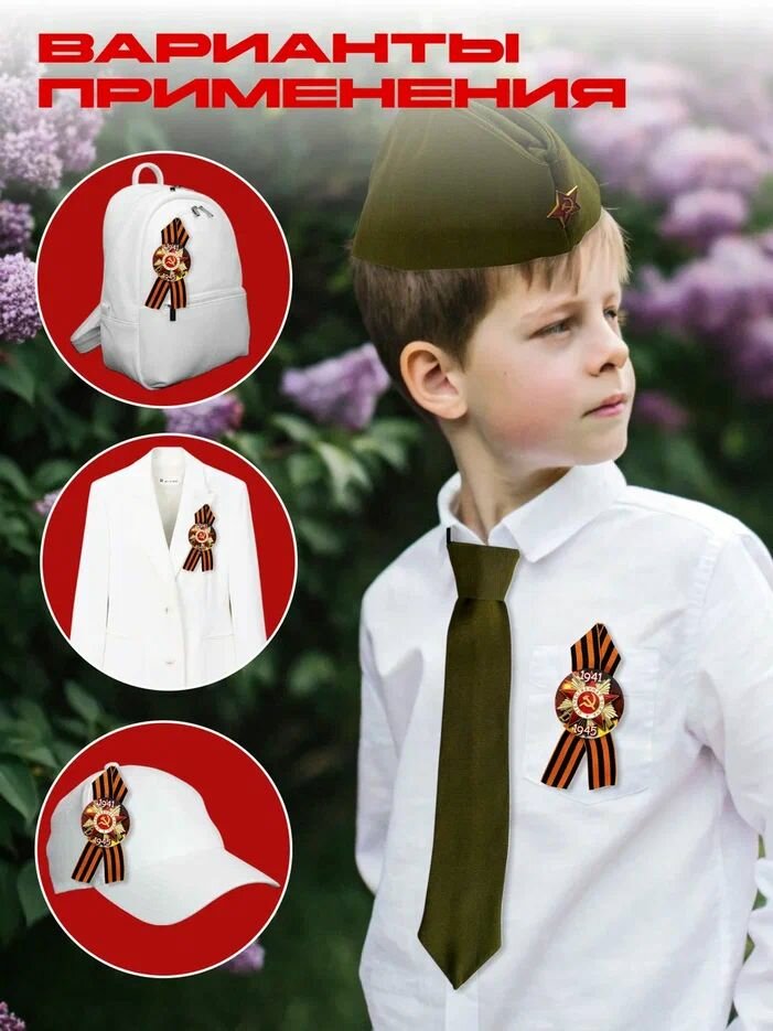 Значок на 9 мая с георгиевской лентой "Отечественная война 1941-1945" (металл) ко Дню Победы, 4 шт.