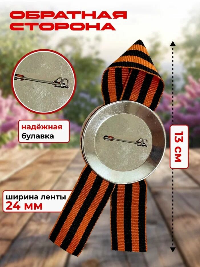 Значок на 9 мая с георгиевской лентой "Россия" (металл) ко Дню Победы
