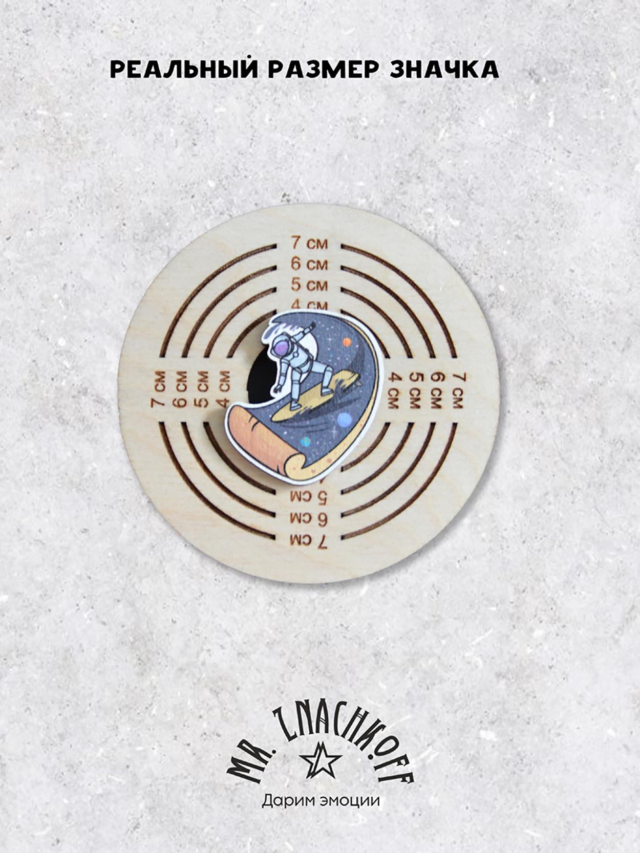 Значок Mr. Znachkoff "Космонавт серфер", дерево, УФ-печать, ручная сборка, на рюкзак интересное: