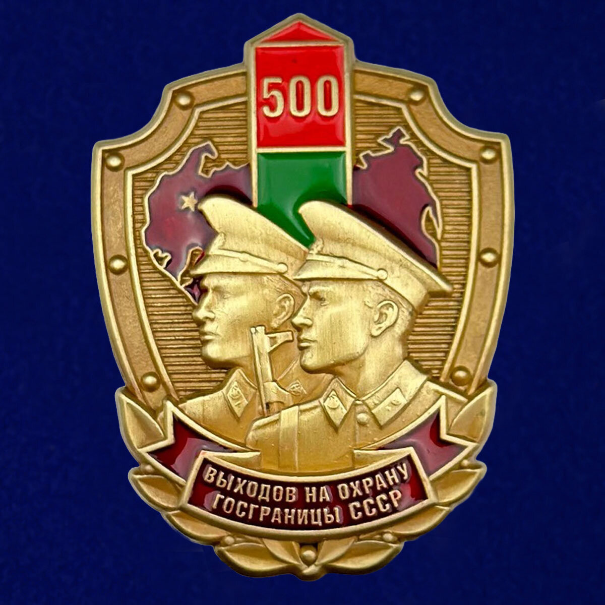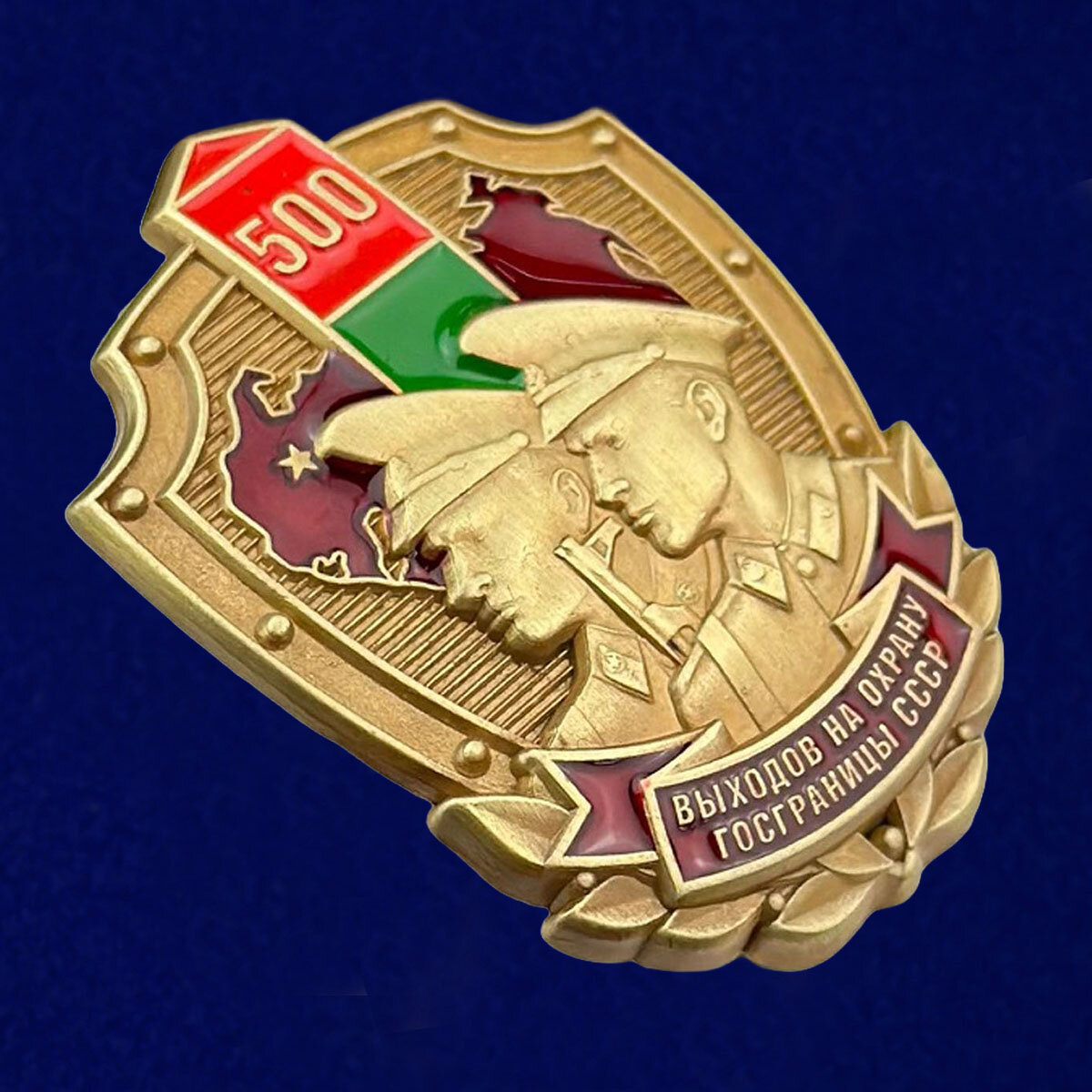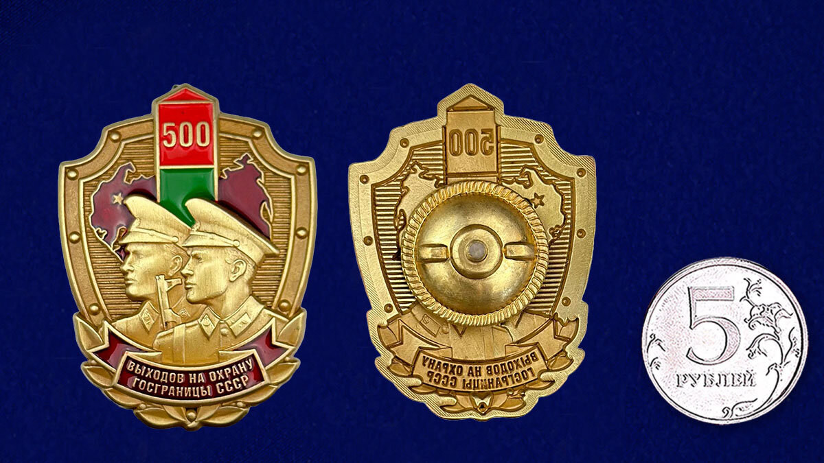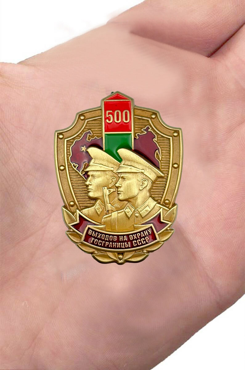 Купить Знак «500 выходов на охрану госграницы СССР», латунь, золотистый цвет