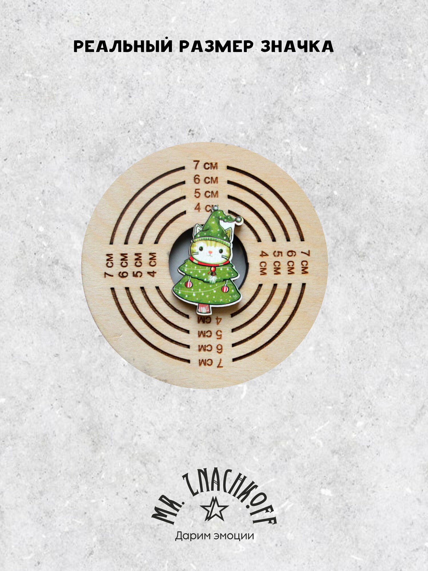 Купить Значок Mr. Znachkoff "Кот-елка", дерево, УФ-печать, влагостойкий, на рюкзак, новогодний