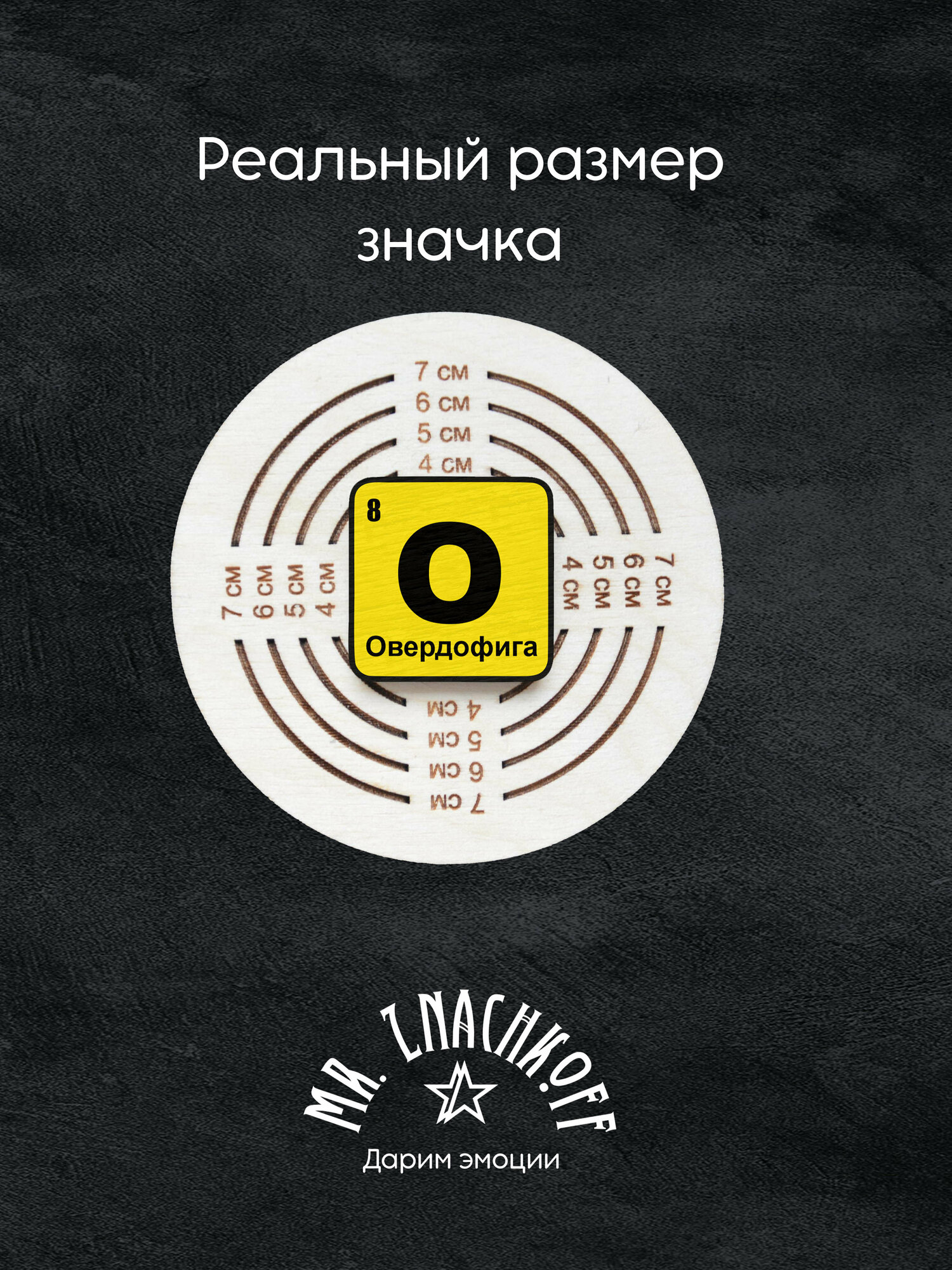 Значок Mr. Znachkoff "Химический элемент Овердофига", дерево, УФ-печать, влагостойкий лак интересное: