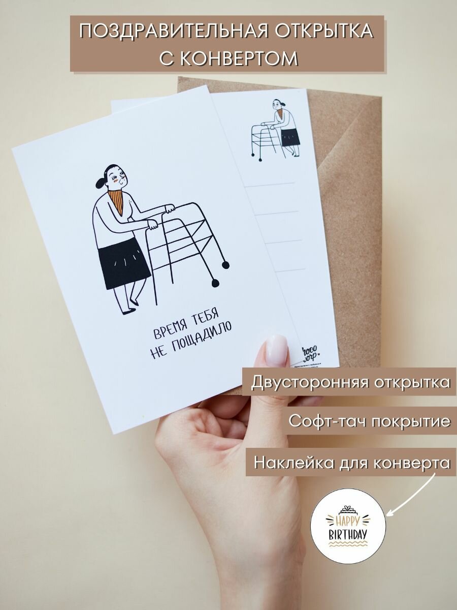 Купить Смешная открытка на День Рождения с конвертом "Время тебя не пощадило", 10,5х15см (А6-формат)