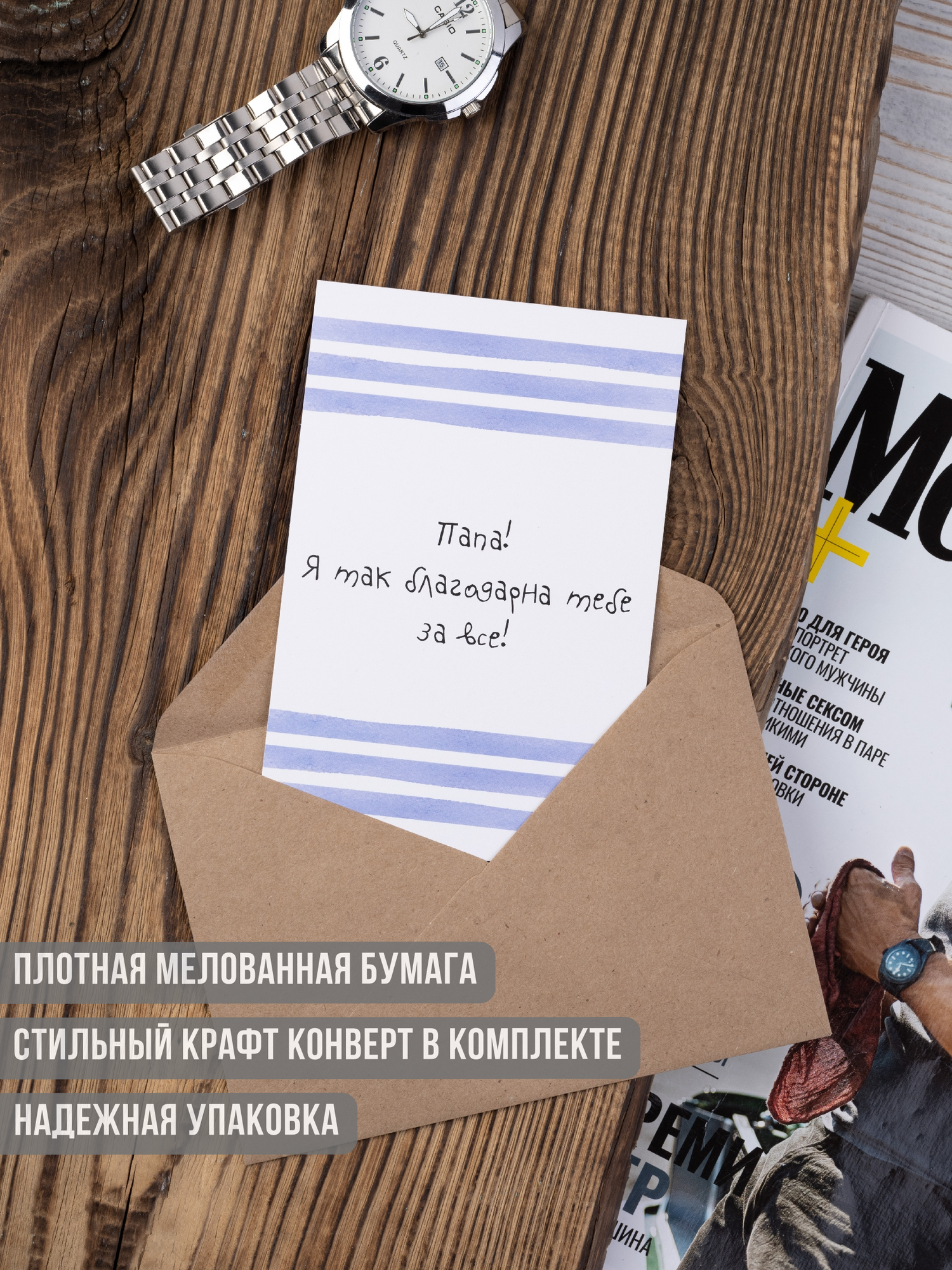 Купить Открытка Udivitti "Для папы", с благодарностью, 10x15 см, конверт в комплекте