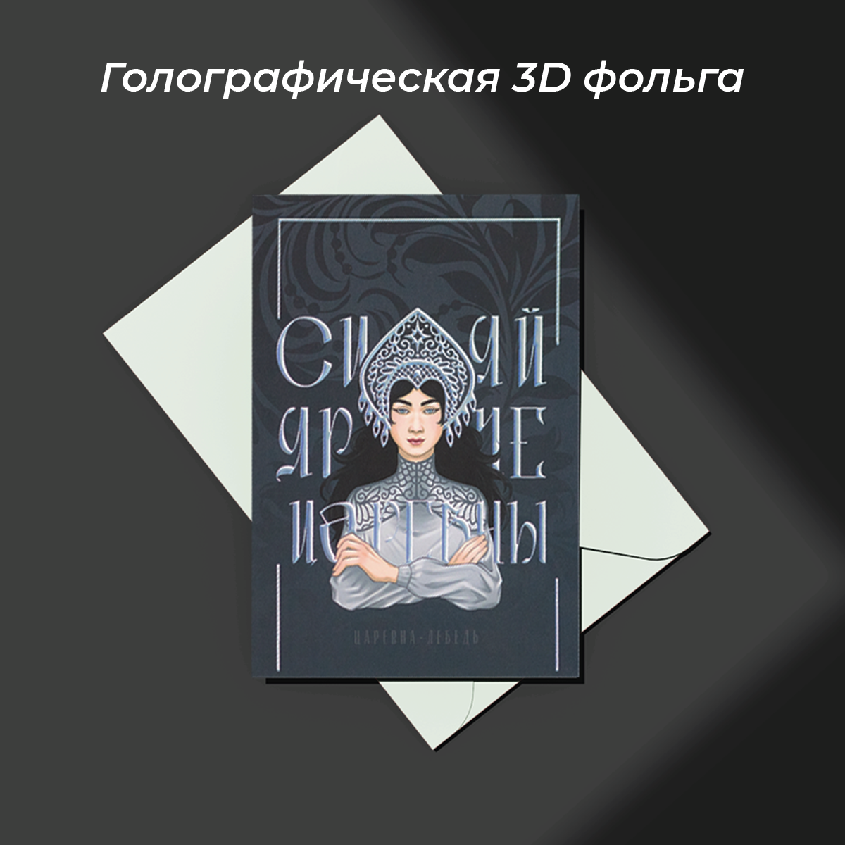 Купить Открытка "Царевна-Лебедь" из серии "Русские царевны" бирюзового цвета размер 10,5х14,7 см