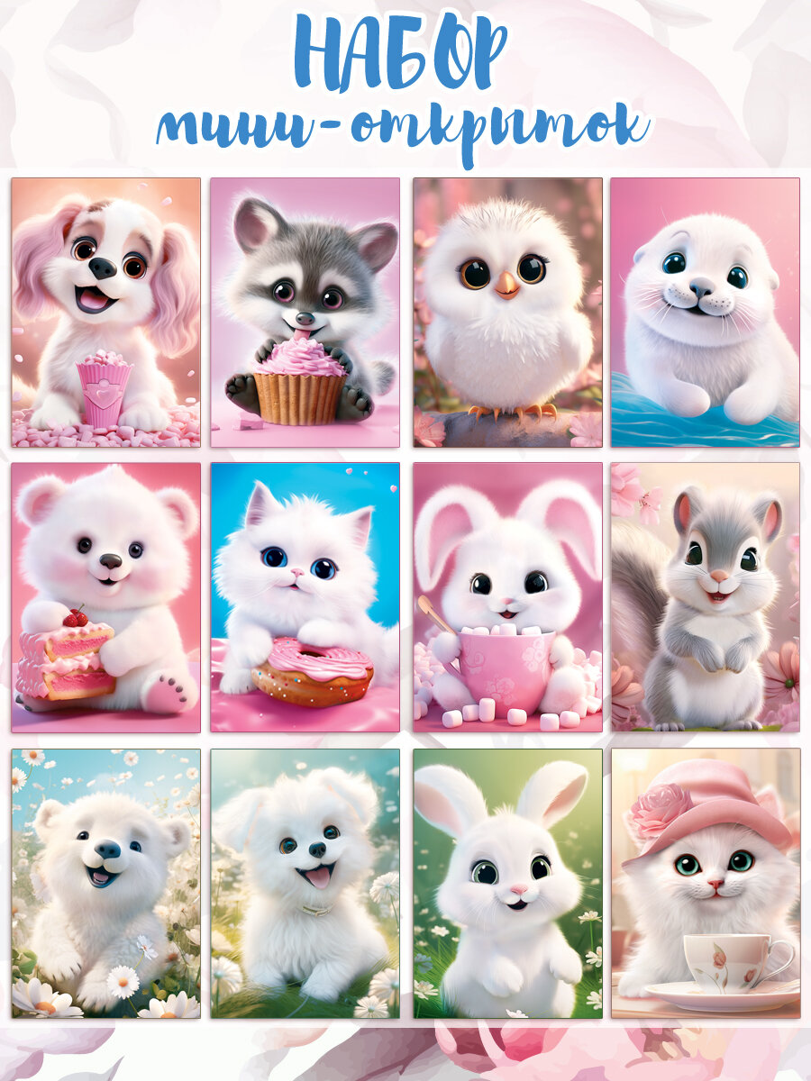 Купить Набор мини-открыток "Зверята" Мир открыток, поздравительные без текста, 20 шт