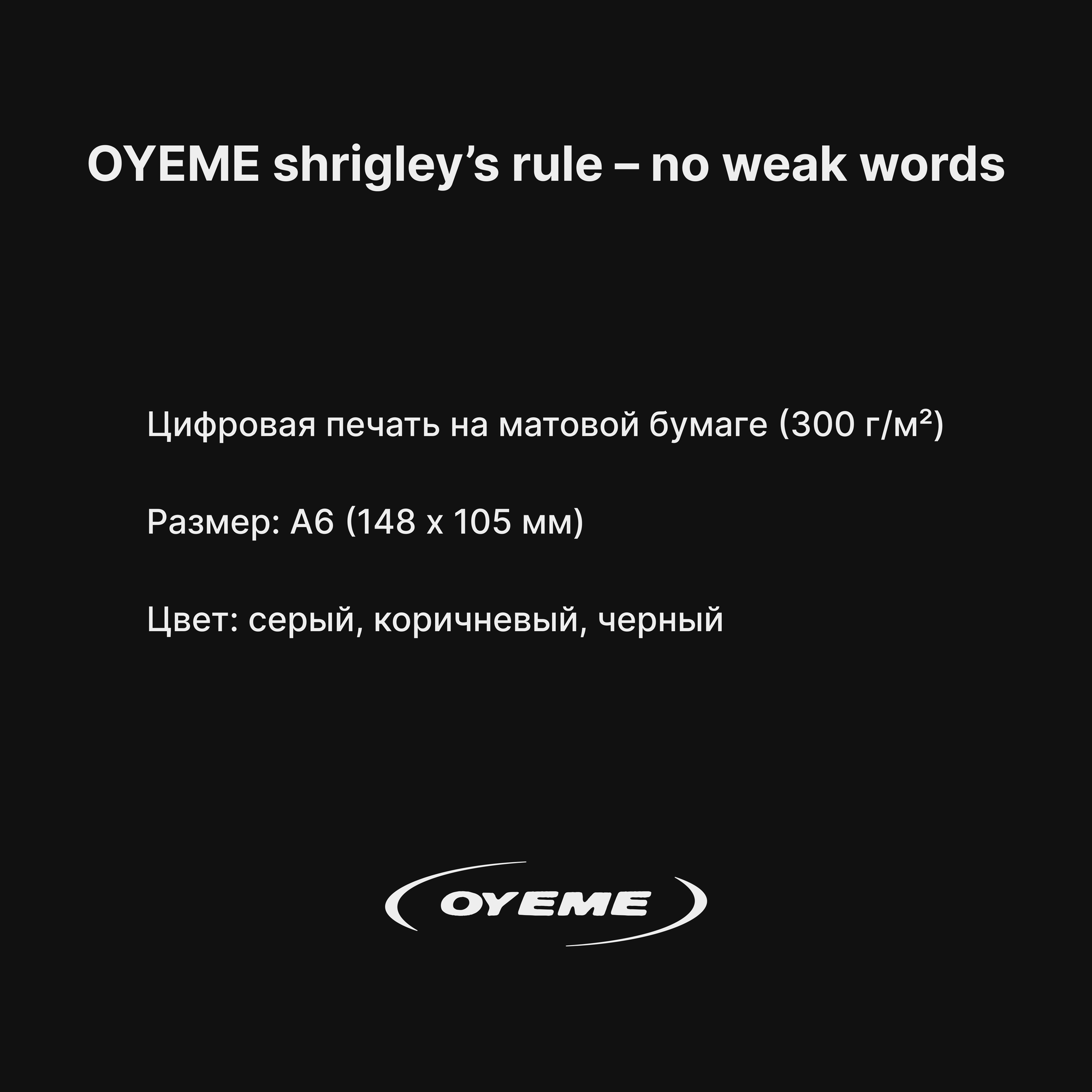 OYEME shrigley’s rule – no weak words / авторская открытка «Weak Messages Create Bad Situations» / 105х148 мм (А6) интересное: