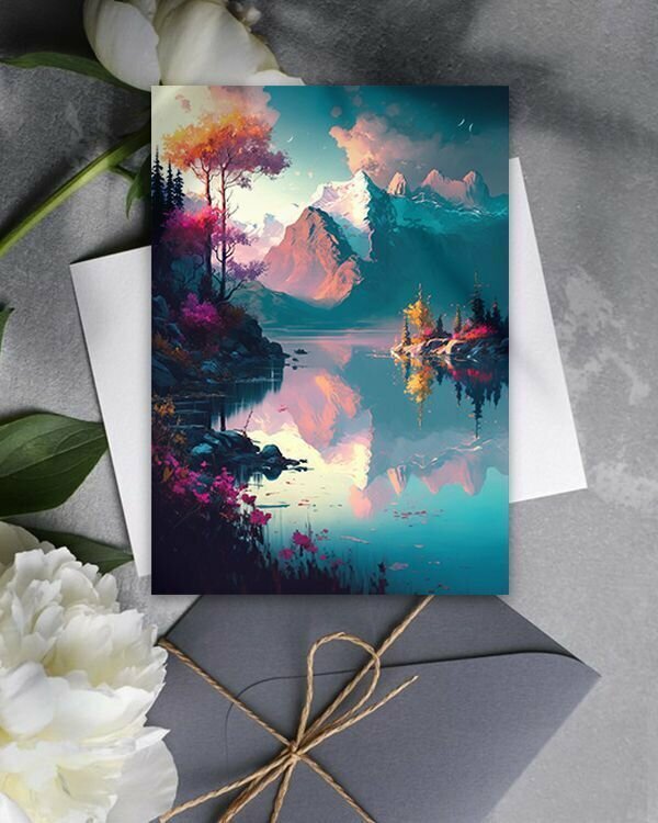Набор открыток Горный пейзаж, 10.5 см х 15 см, 4 шт, InspirationTime, на подарок и в коллекцию