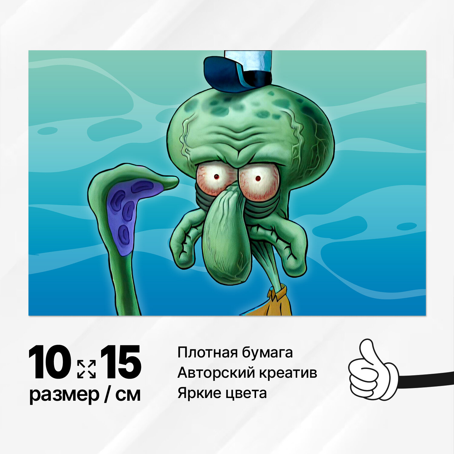 Дизайнерская открытка "Сквидвард" (10х15см, плотная бумага, авторский креатив) интересное: