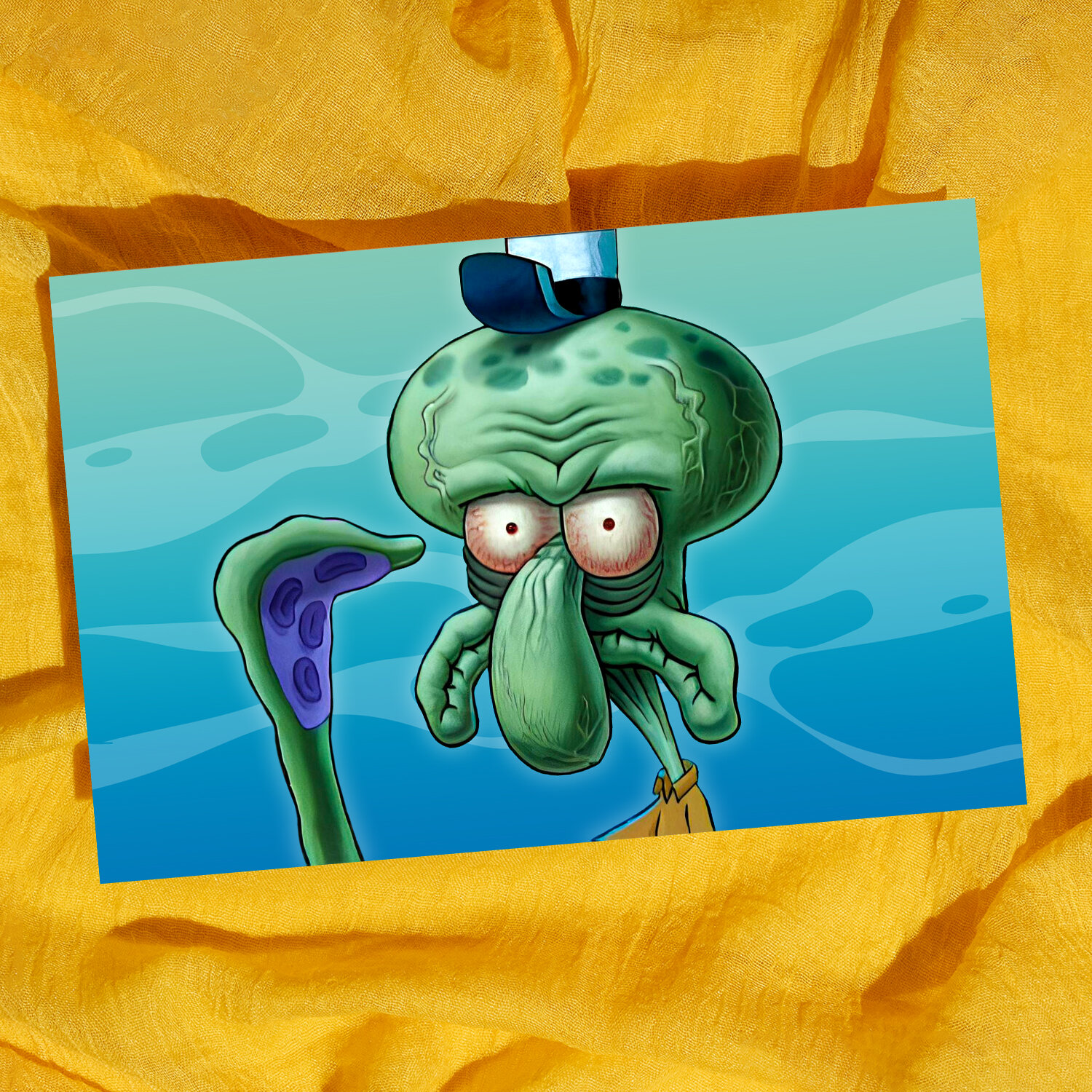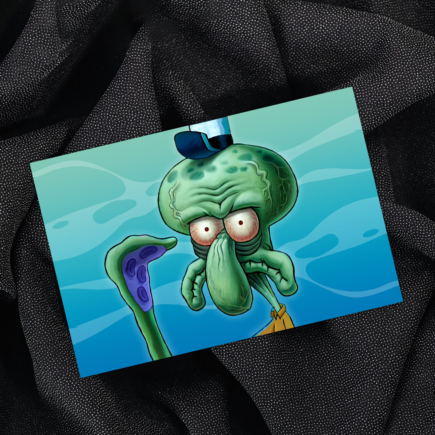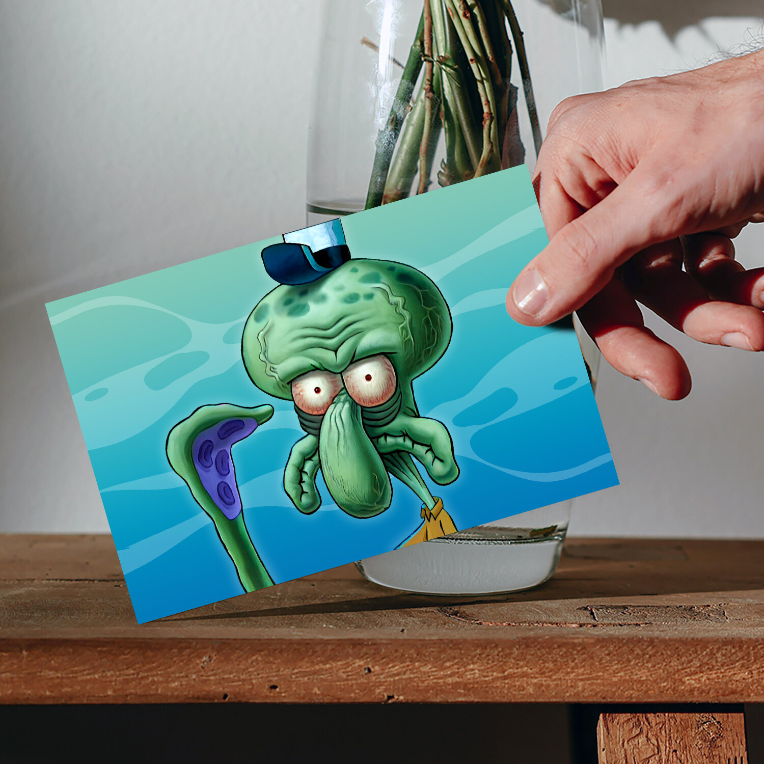 Купить Дизайнерская открытка "Сквидвард" (10х15см, плотная бумага, авторский креатив)