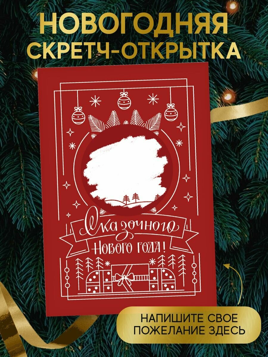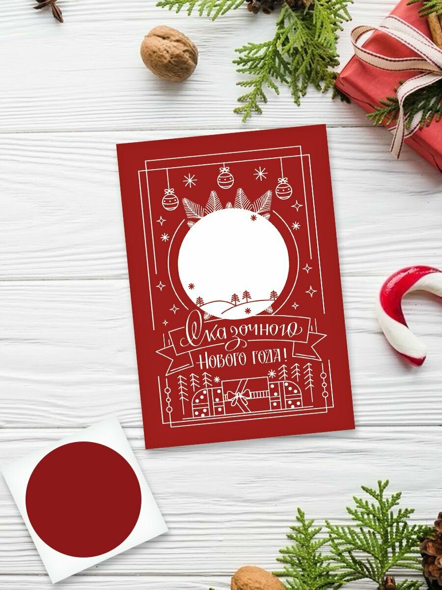 Купить Скретч открытка новогодняя со стирающимся слоем с конвертом пустая