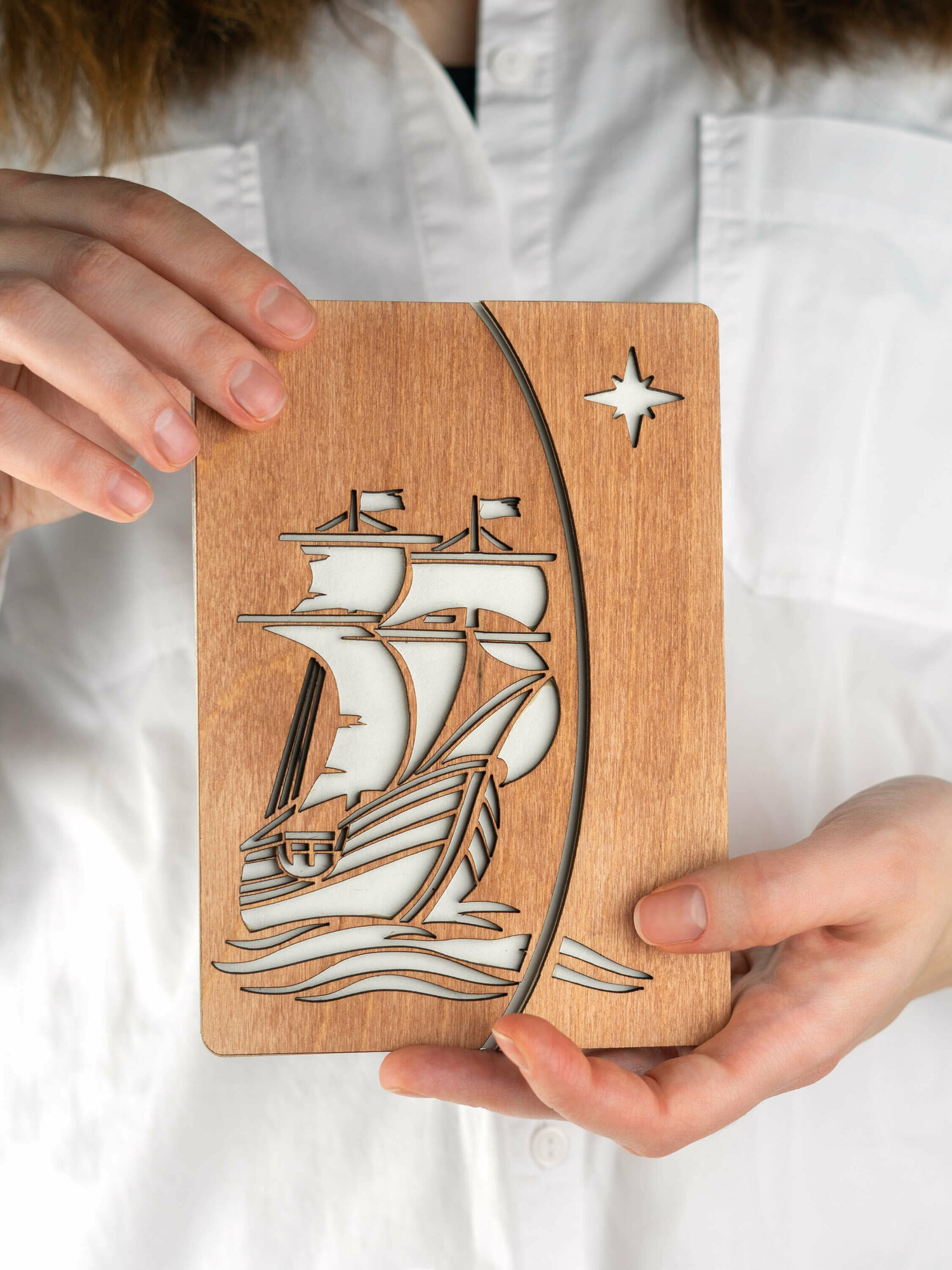 Деревянная открытка Самолет l Подарок Мужчине, 17х12 см