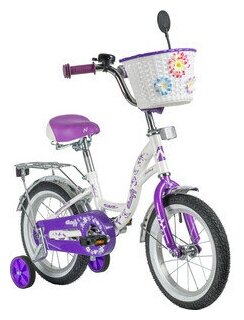 Велосипед NOVATRACK 14" BUTTERFLY белый-фиолетовый, тормоз нож, крылья и багаж хром, корз, полн защ.