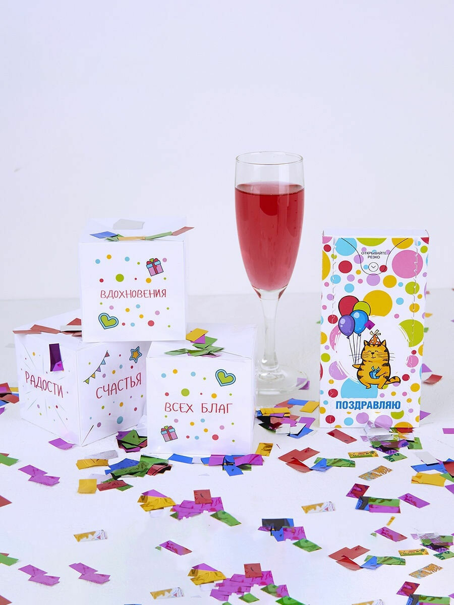 Подарочная бум-открытка с конфетти "Поздравляю!" - универсальная открытка на праздник или событие, юбилей, День рождения - Notta & Belle интересное: